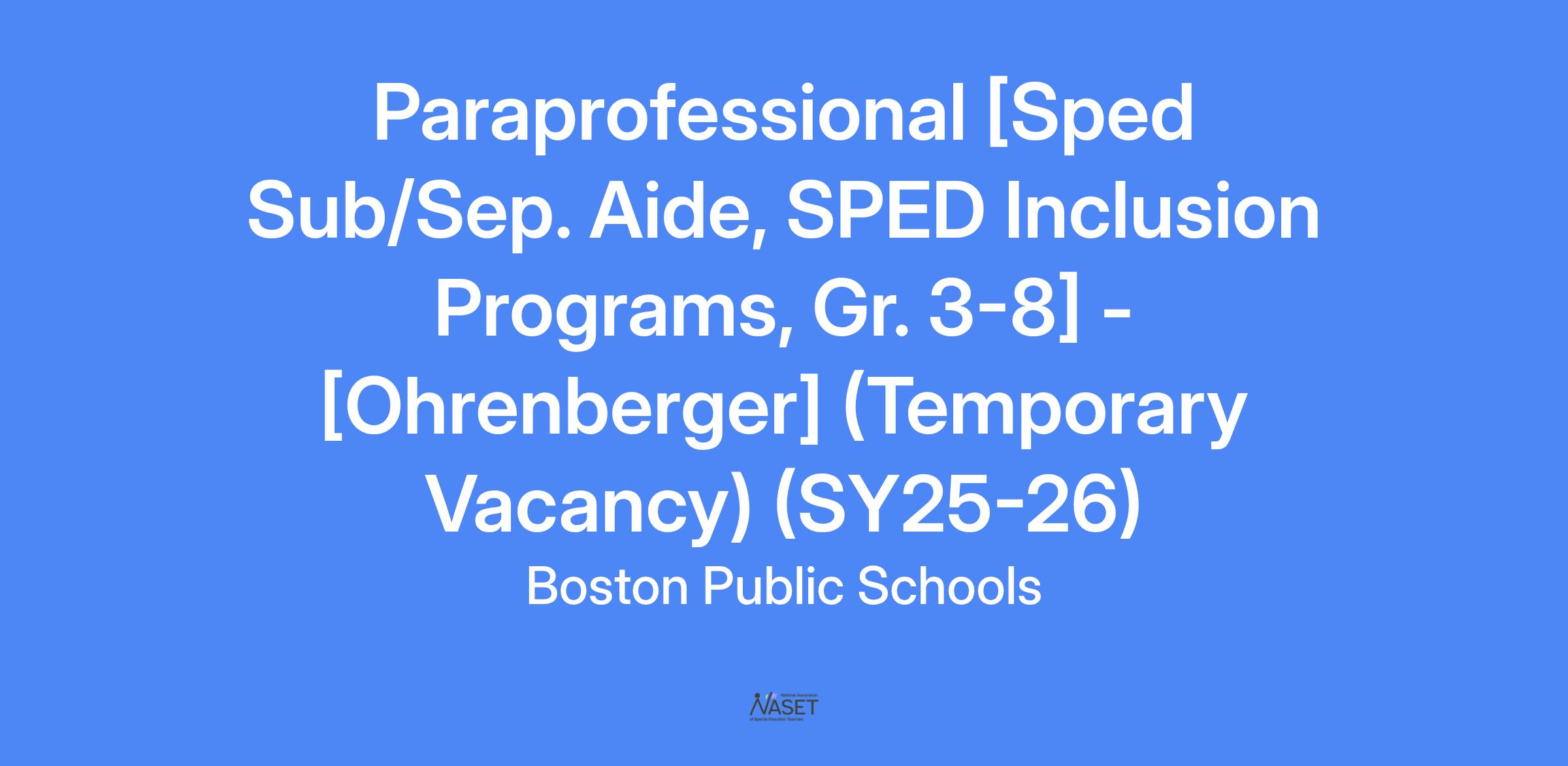 Paraprofessionals will assist teachers in providing an innovative, high quality education program designed to meet the needs of the children in the Boston Public Schools. Paraprofessionals will work with school staff to create an educational environment in which quality and continuity are key factors in educating the students of the Boston Public Schools.
