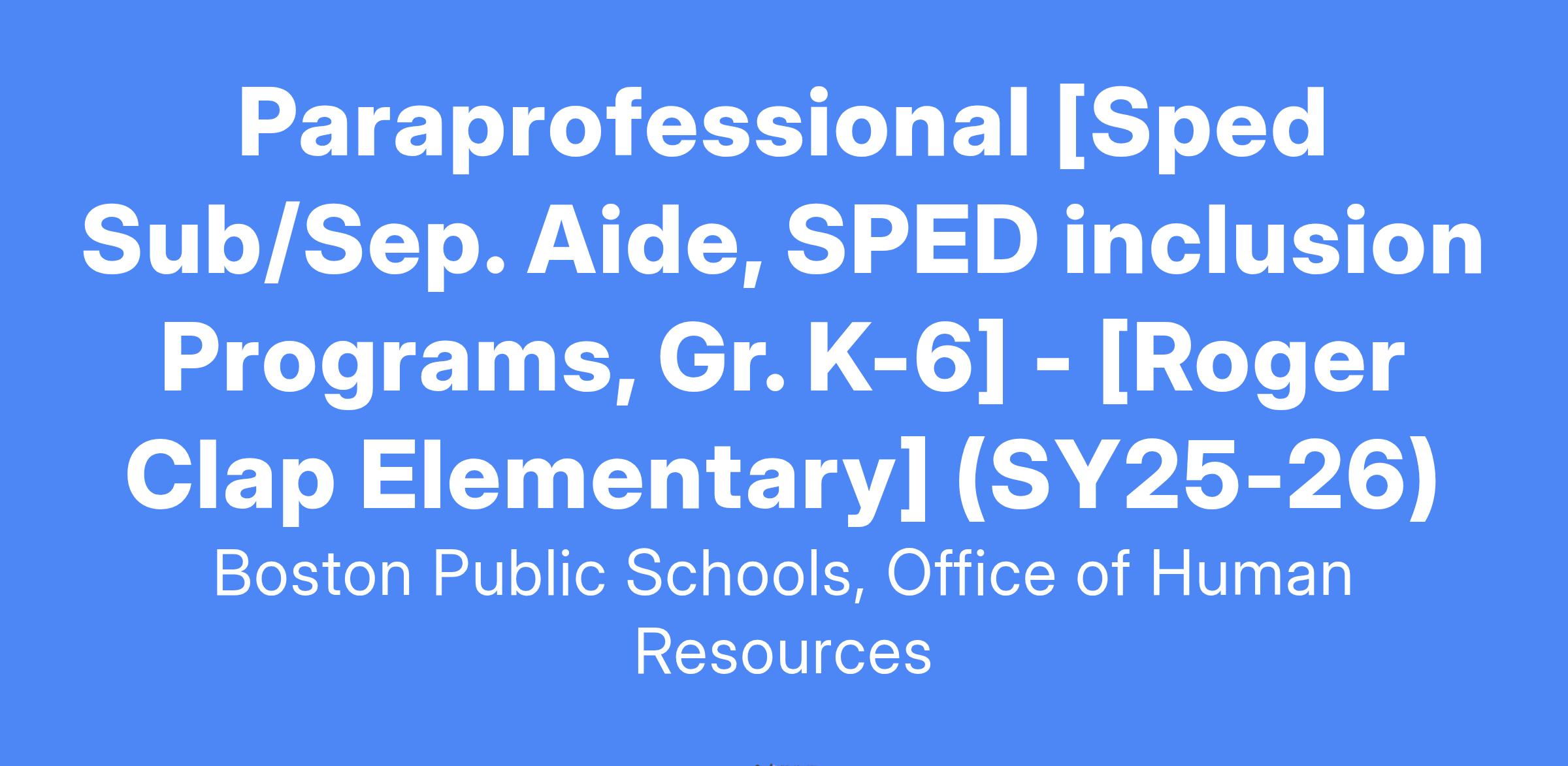 Paraprofessional [Sped Sub/Sep. Aide, SPED inclusion Programs, Gr. K-6] - [Roger Clap Elementary] (SY25-26)