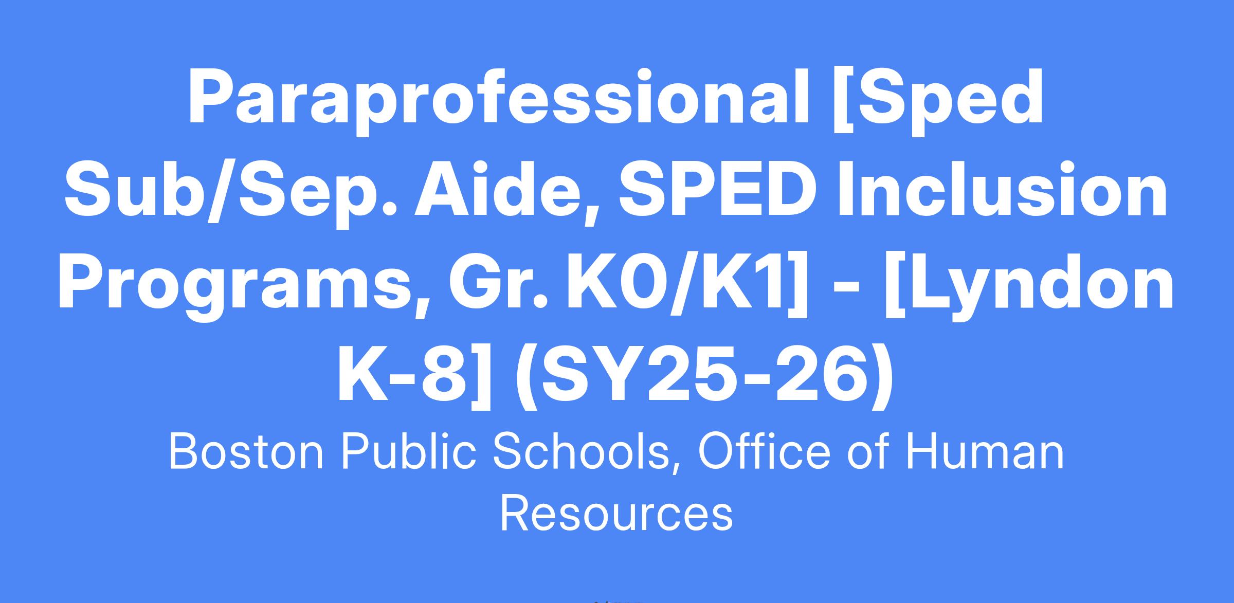 Paraprofessional [Sped Sub/Sep. Aide, SPED Inclusion Programs, Gr. K0/K1] - [Lyndon K-8] (SY25-26)