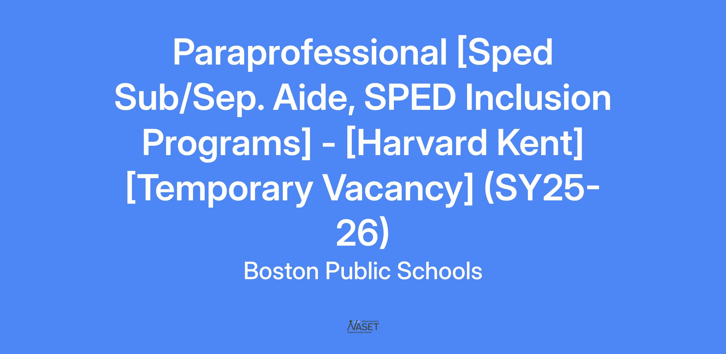 Paraprofessionals will assist teachers in providing an innovative, high quality education program designed to meet the needs of the children in the Boston Public Schools. Paraprofessionals will work with school staff to create an educational environment in which quality and continuity are key factors in educating the students of the Boston Public Schools.