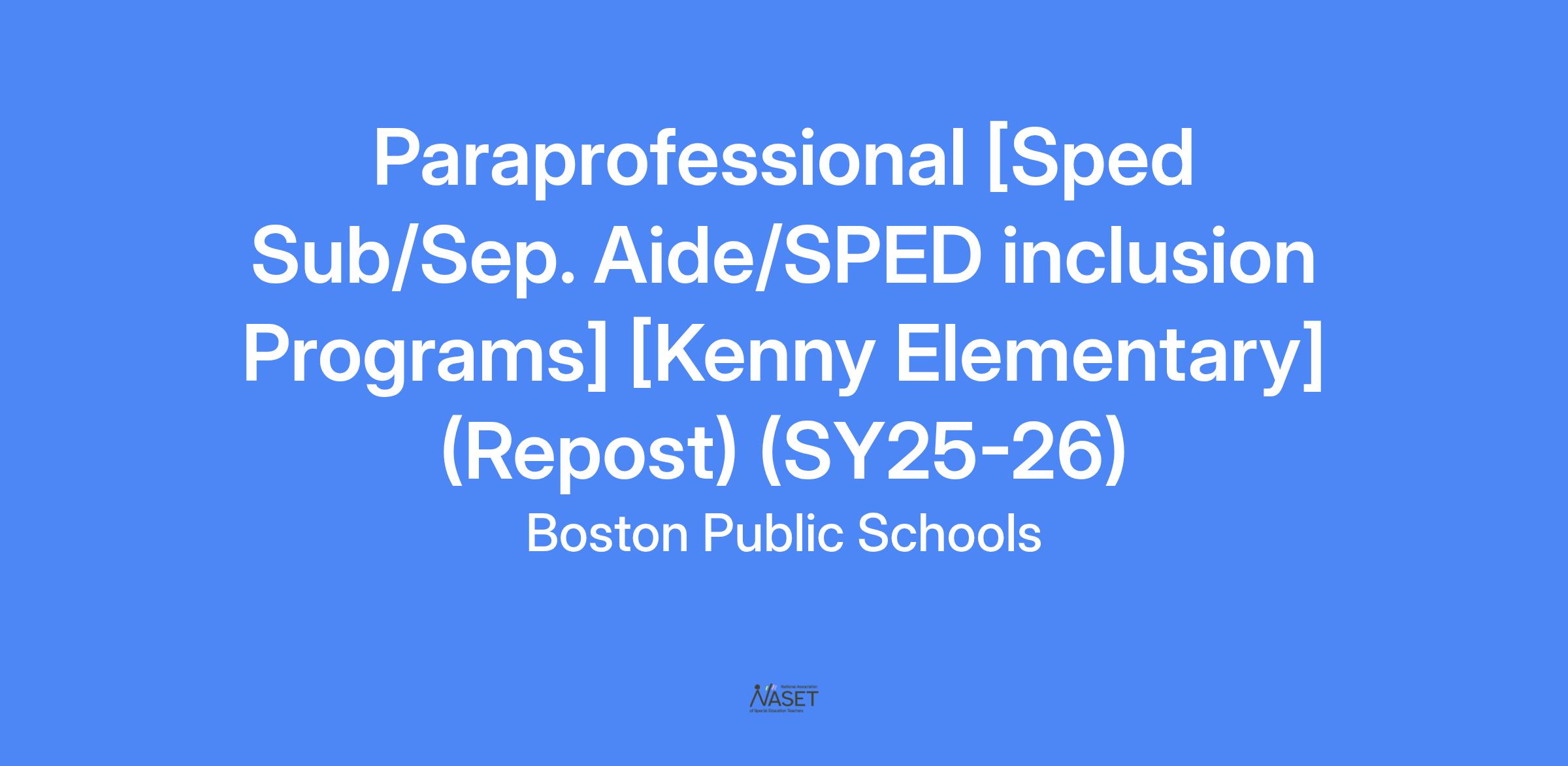 Paraprofessional [Sped Sub/Sep. Aide/SPED inclusion Programs] [Kenny Elementary] (Repost) (SY25-26)