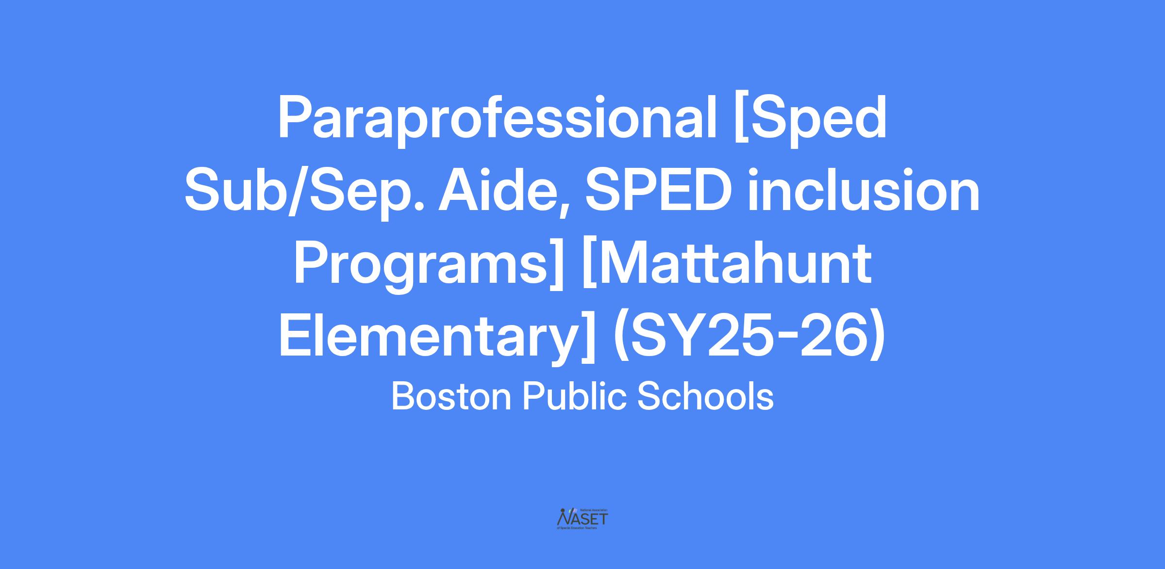 Paraprofessional [Sped Sub/Sep. Aide, SPED inclusion Programs] [Mattahunt Elementary] (SY25-26)