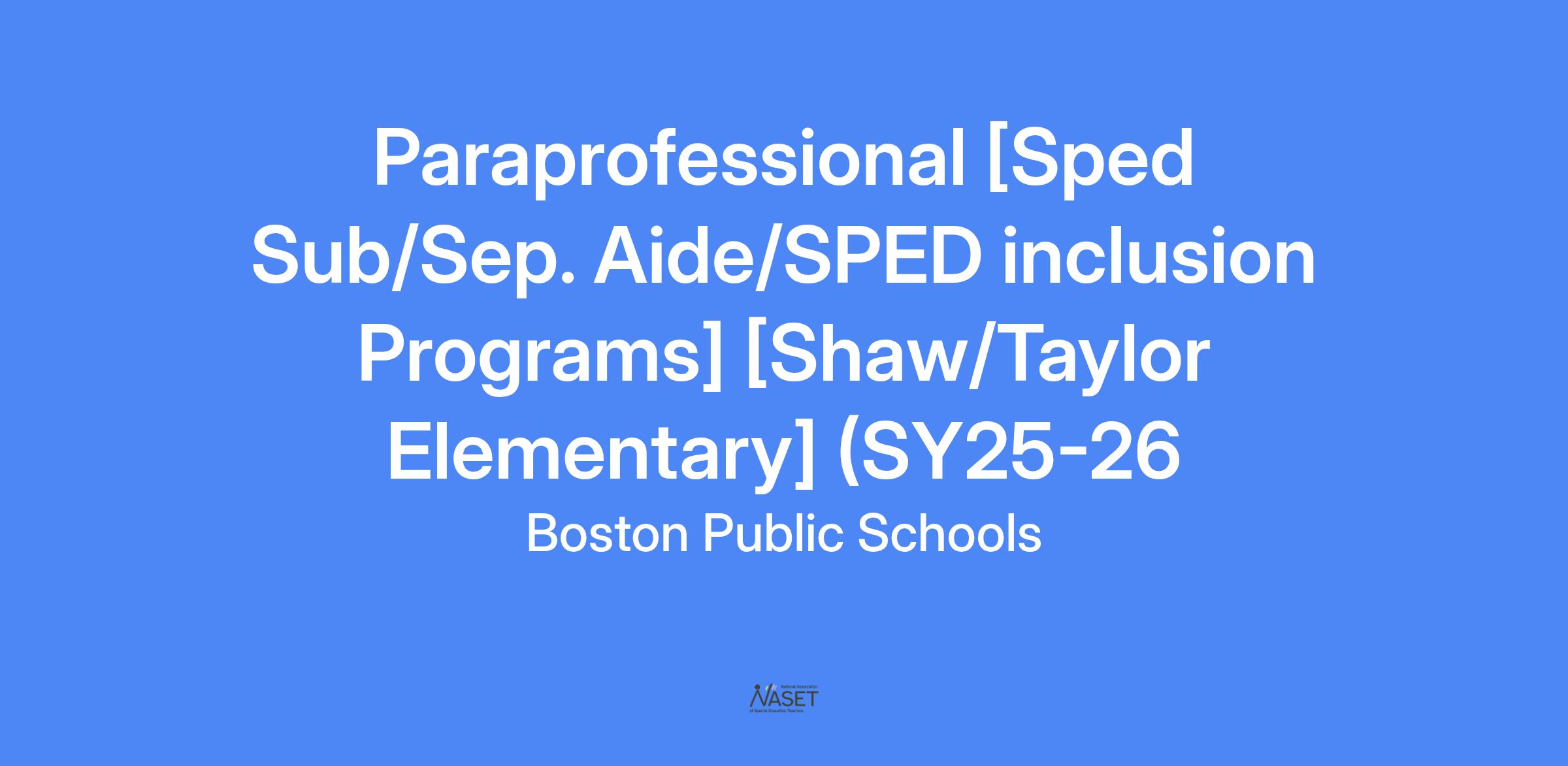 Paraprofessionals will assist teachers in providing an innovative, high quality education program designed to meet the needs of the children in the Boston Public Schools. Paraprofessionals will work with school staff to create an educational environment in which quality and continuity are key factors in educating the students of the Boston Public Schools.