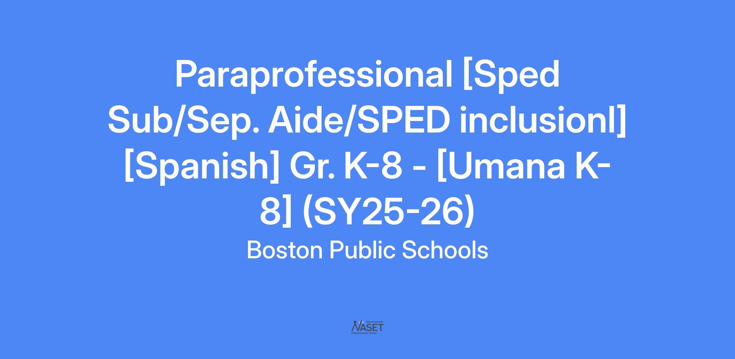 Paraprofessional [Sped Sub/Sep. Aide/SPED inclusionl][Spanish] Gr. K-8 - [Umana K-8] (SY25-26)