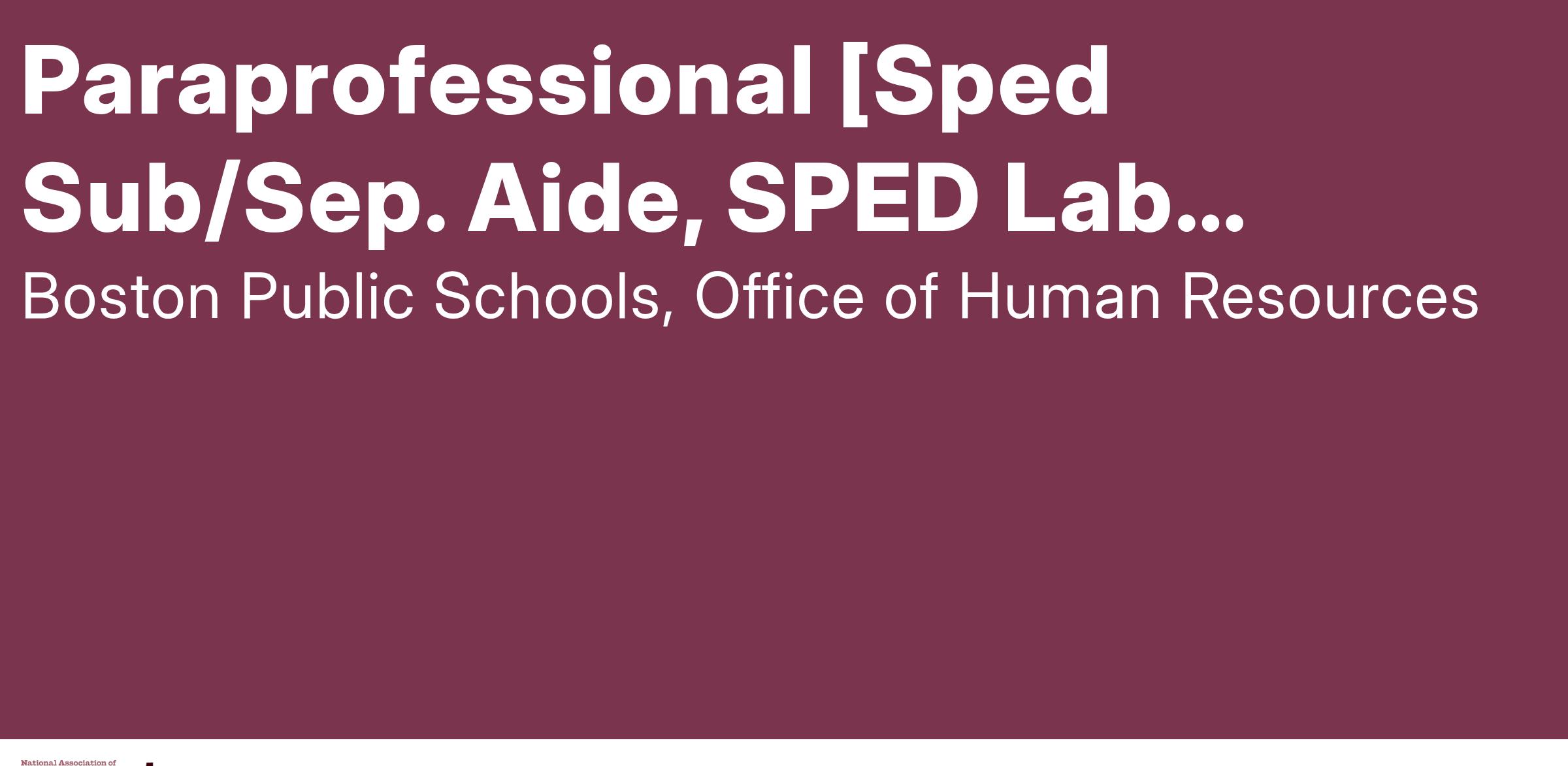 Paraprofessional [Sped Sub/Sep. Aide, SPED Lab clusters, 9-12] - [Another Course to College] (SY25-26)