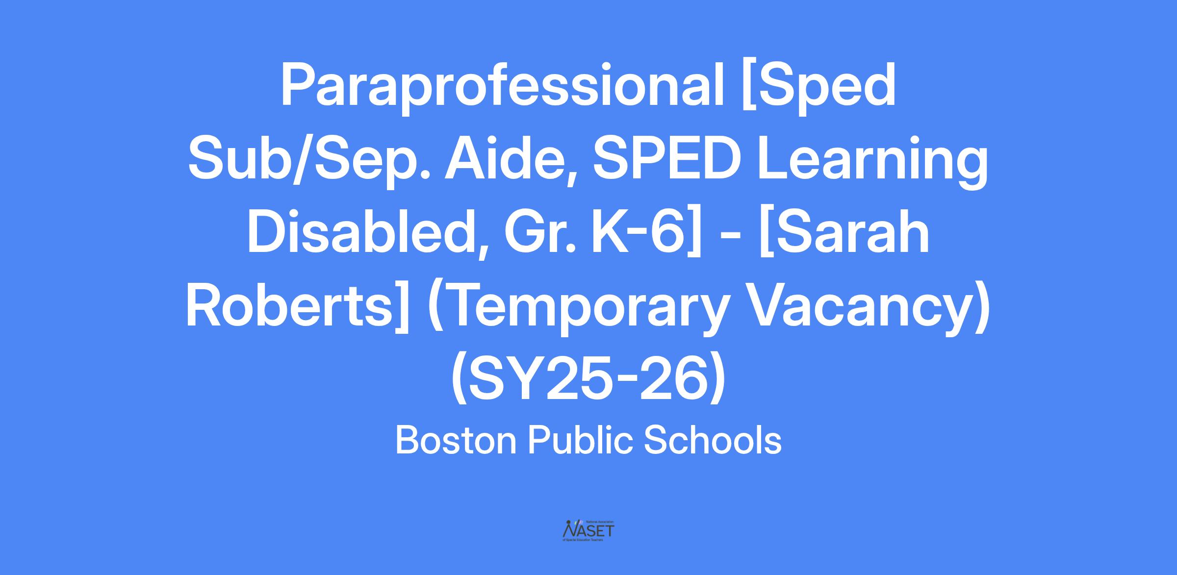 This position is a temporary vacancy covering for a paraprofessional on leave. The position is expected to end on 02/23/26 when the current paraprofessional returns to work. At that time, the covering paraprofessional will be terminated from the position.