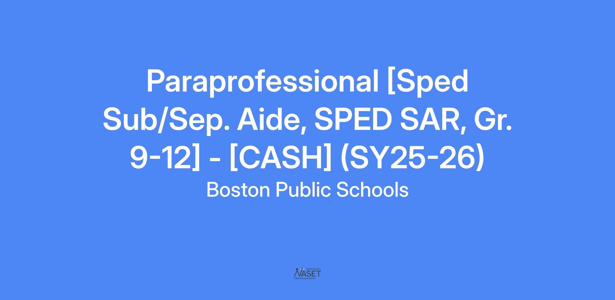 Paraprofessional [Sped Sub/Sep. Aide, SPED SAR, Gr. 9-12] - [CASH] (SY25-26)