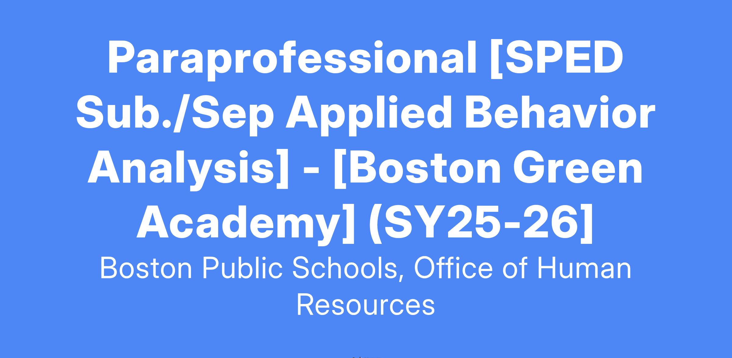 Paraprofessional [SPED Sub./Sep Applied Behavior Analysis] - [Boston Green Academy] (SY25-26]