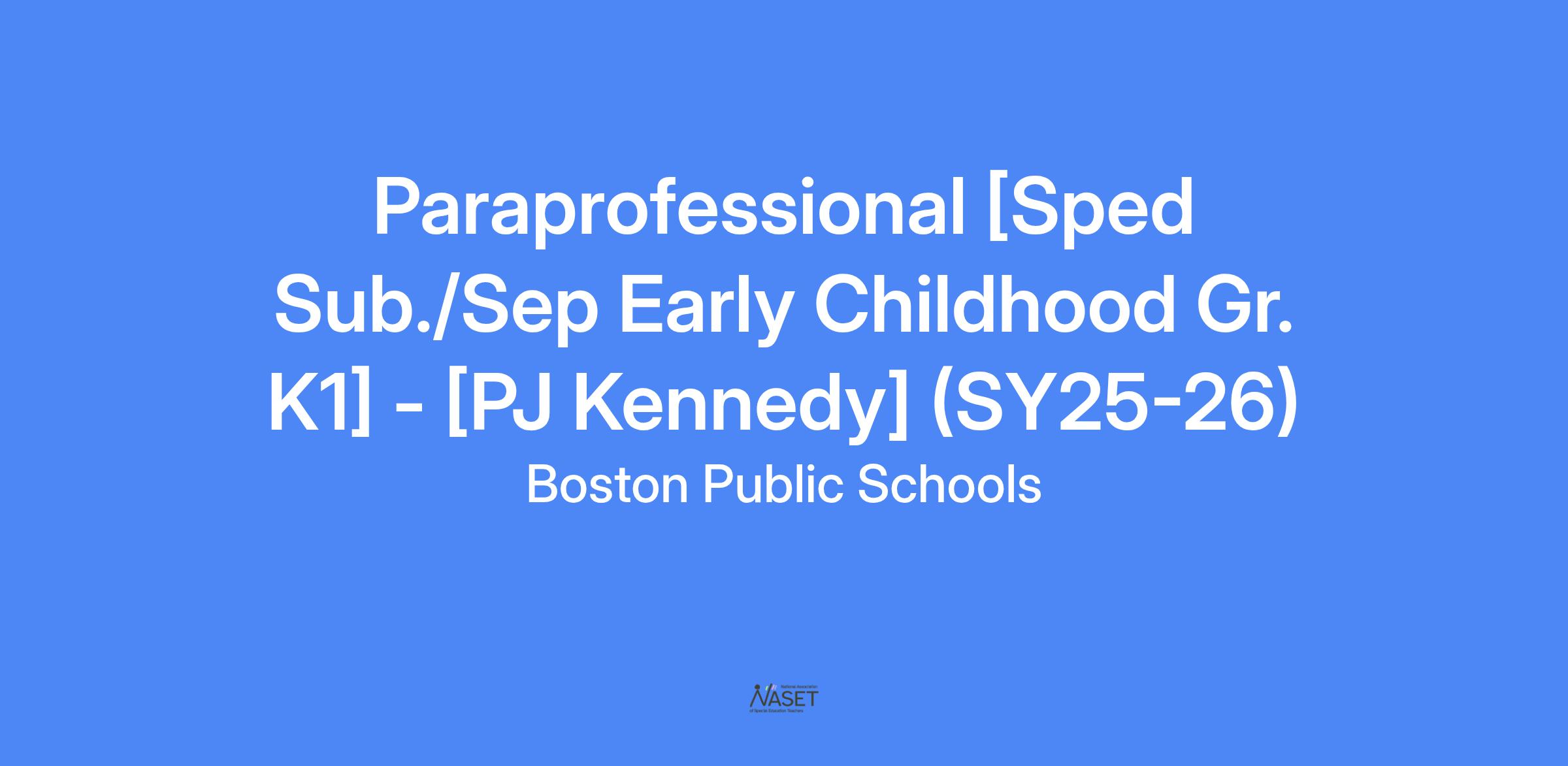 Paraprofessional [Sped Sub./Sep Early Childhood Gr. K1] - [PJ Kennedy] (SY25-26)
