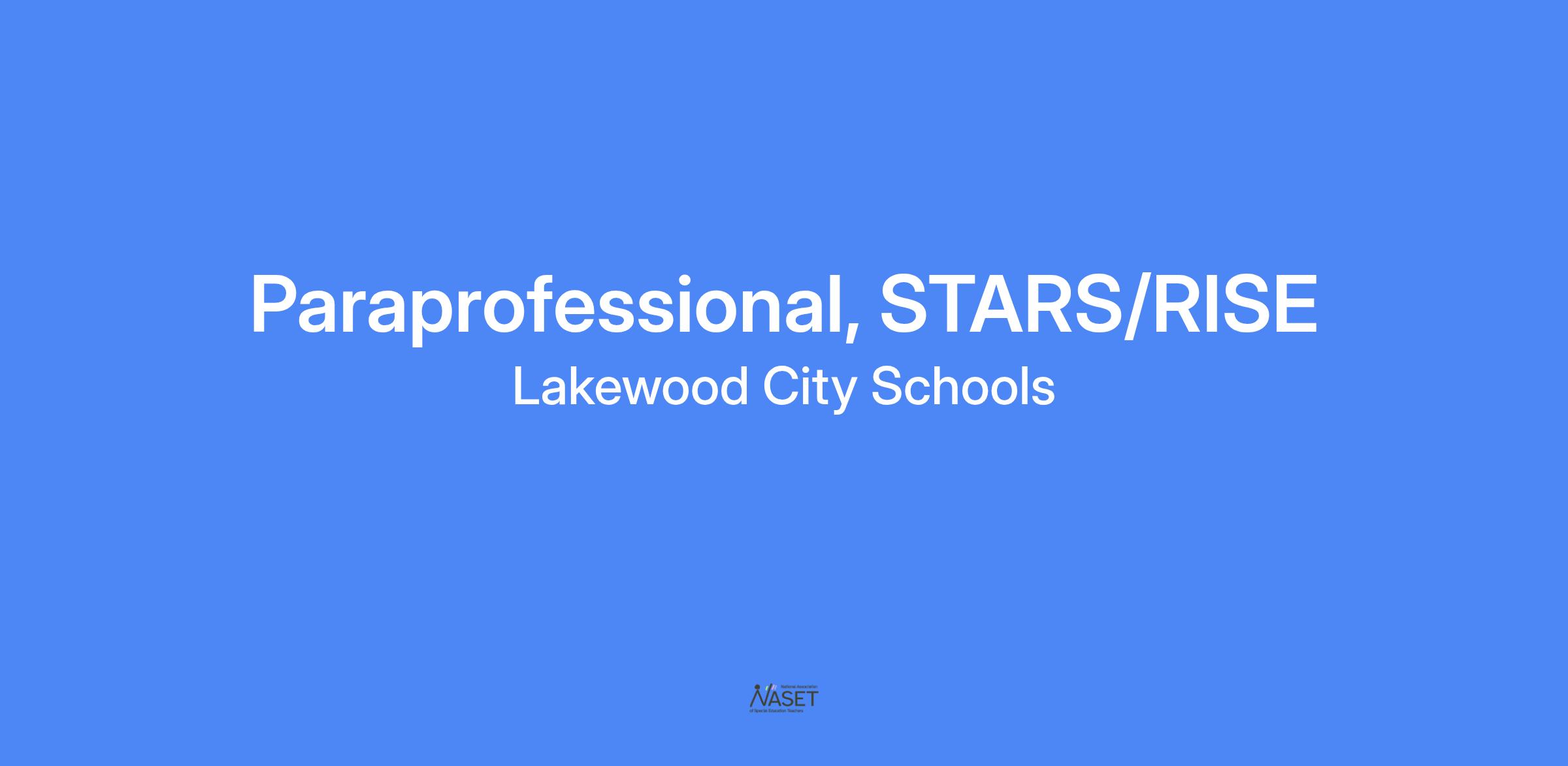 Paraprofessional, STARS/RISE Unit: Emerson Elementary School; 2025-2026 school year; self-contained unit; not to exceed six hours and 15 minutes per day with 30 minutes unpaid lunch; position also includes a 30 minute paid weekly meeting; behavioral focused unit, must be willing to be trained in crisis prevention intervention training; must have or obtain an education aide permit from the Ohio Department of Education and meet the guidelines of Every Student Succeeds Act; responsible to building principal and/or designee.