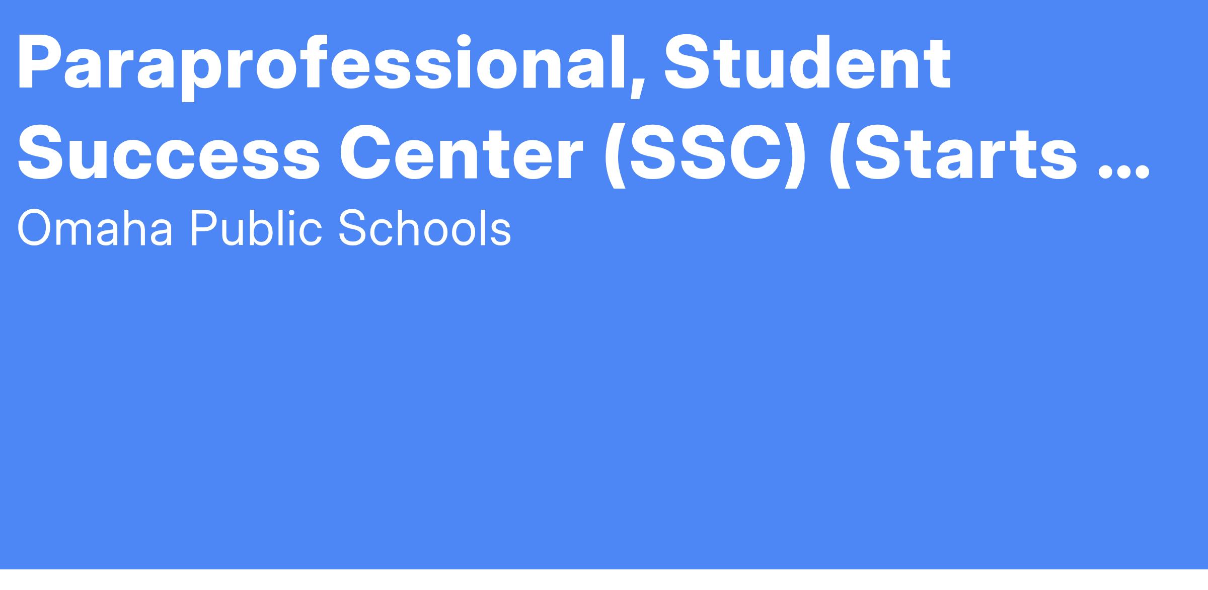 Job Title: Paraprofessional, Student Success Center (SSC) /In School Suspension (ISS)