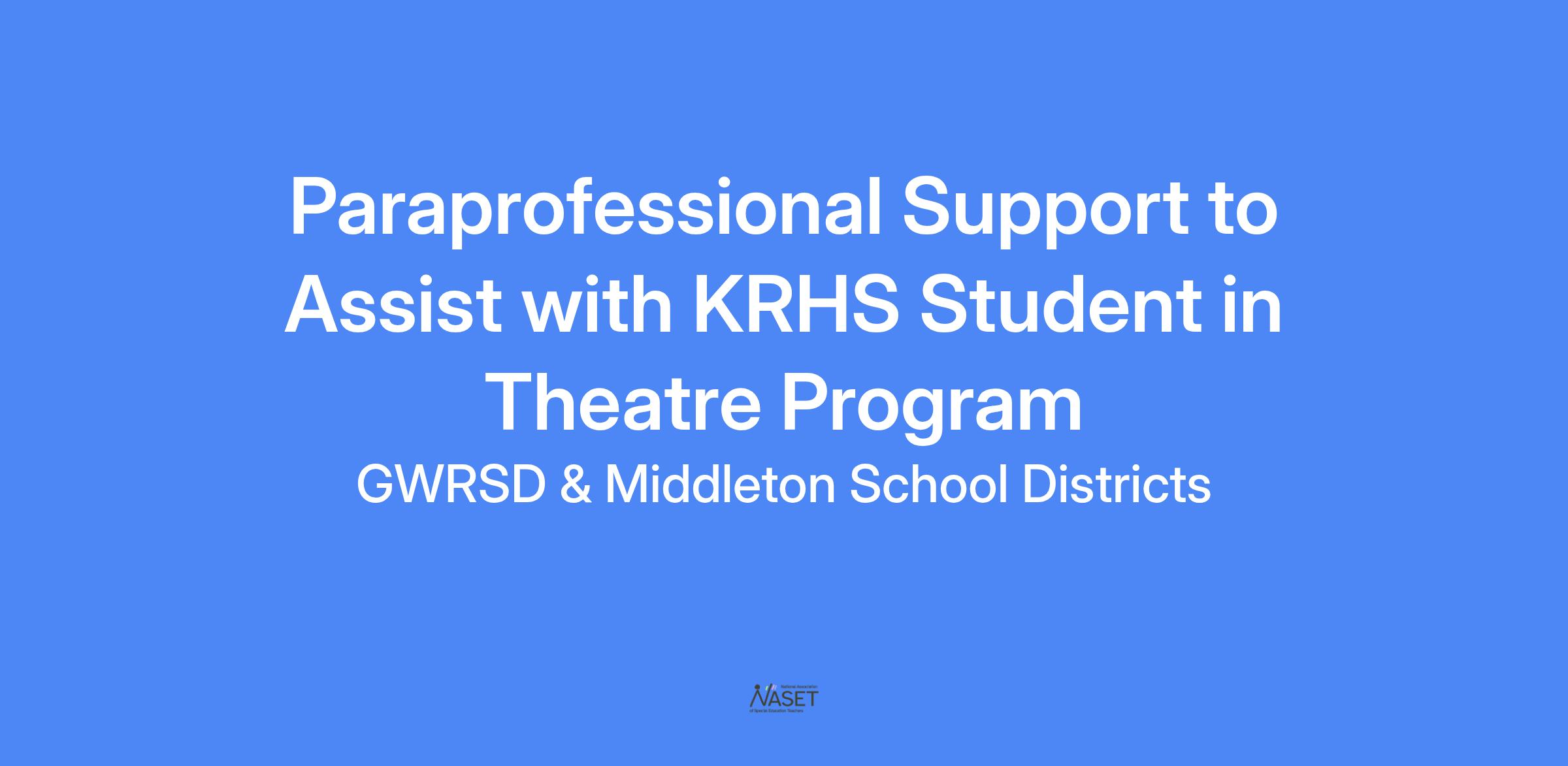 Description: Afterschool Paraprofessional Support to Assist with KRHS Student in Theatre Program
