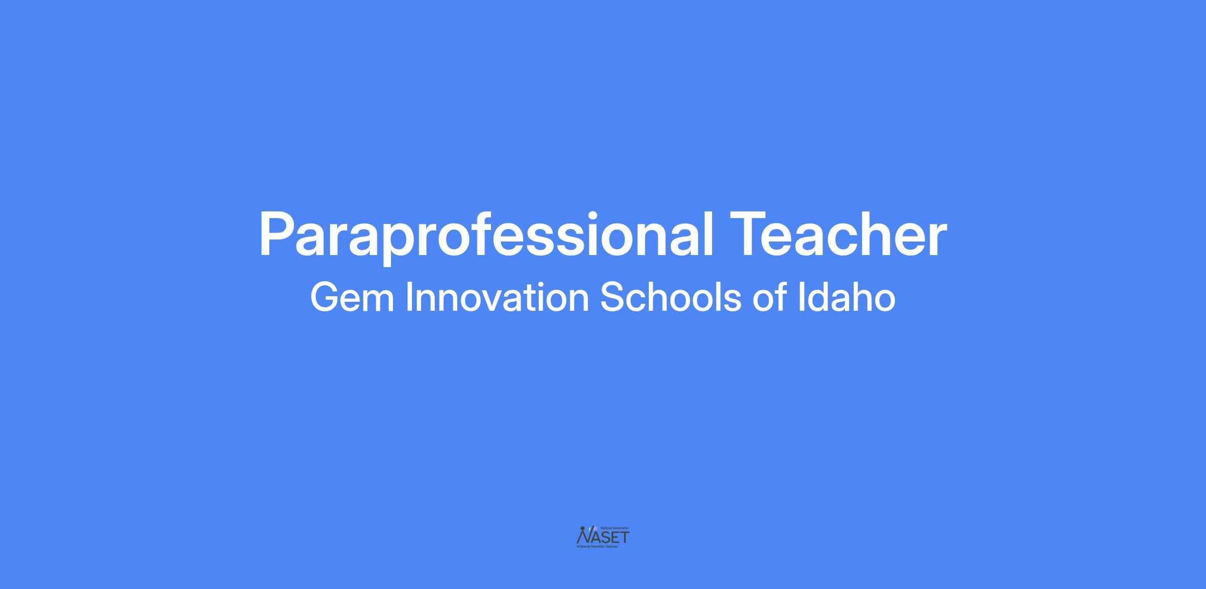 Job Position: | Paraprofessional | School: | Gem Prep: Meridian | |