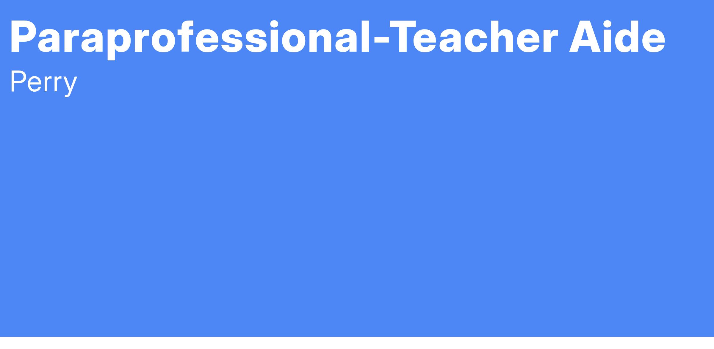 Perry County School District No. 32 is seeking a Paraprofessional - Teacher Aide for the 2025-2026 school year. A teacher aide reinforces lessons presented by teachers by reviewing material with students one-on-one or in small groups. One may be requested to provide non-instructional services to students necessary for the student to access the district’s facilities and programs. These services may include, but are not limited to, ambulatory, eating and toileting assistance.
