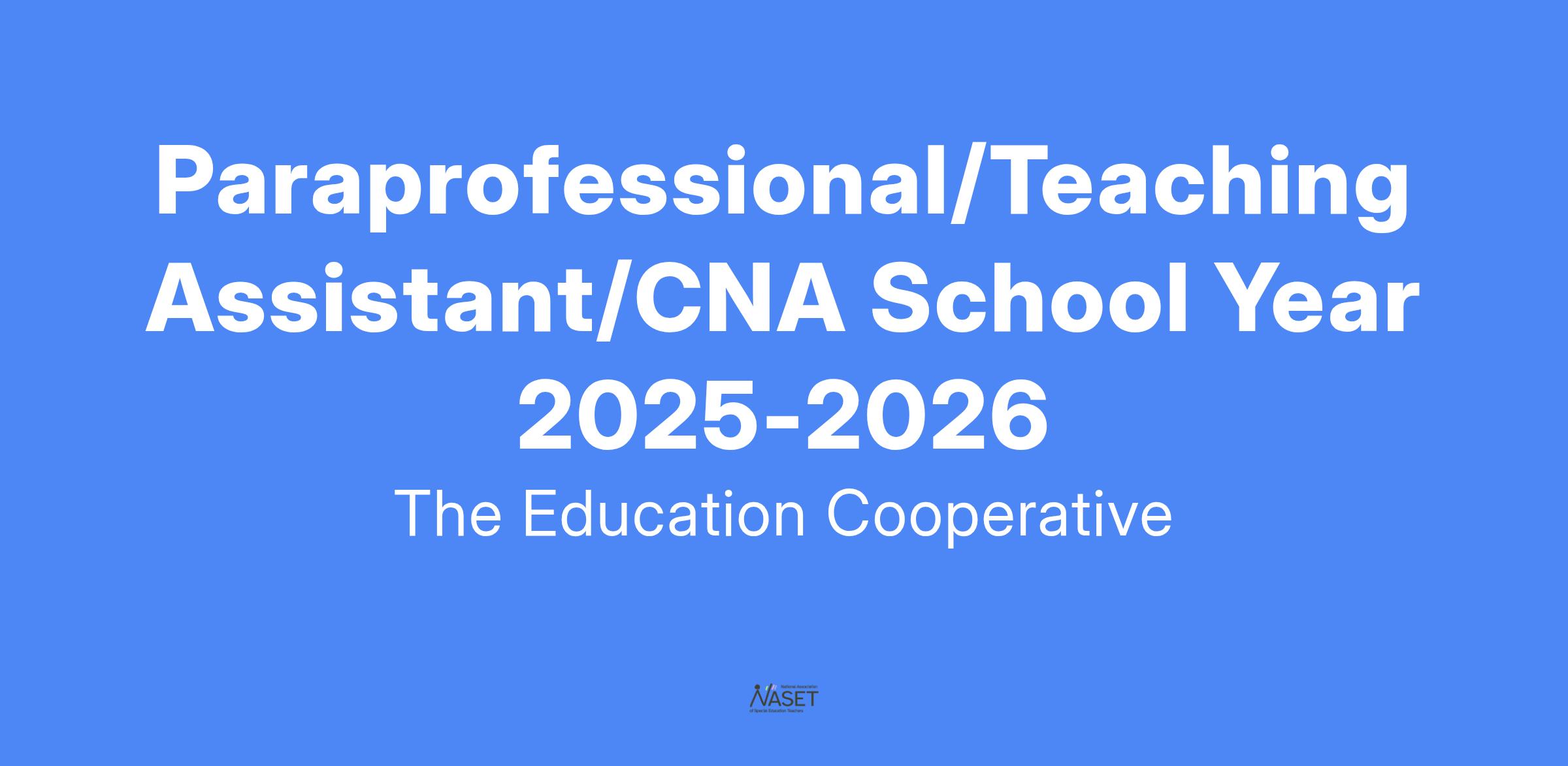 The TEC Special Education Classroom Aide/Paraprofessional/CNA supports the special education teacher in meeting the diverse needs of students with a range of disabilities. The Special Education Classroom Aide/Paraprofessional/CNA is required to assist in classroom modifications, personal care of students, and communication with regular and special education staff members, provide structure and feedback, and other duties as assigned.