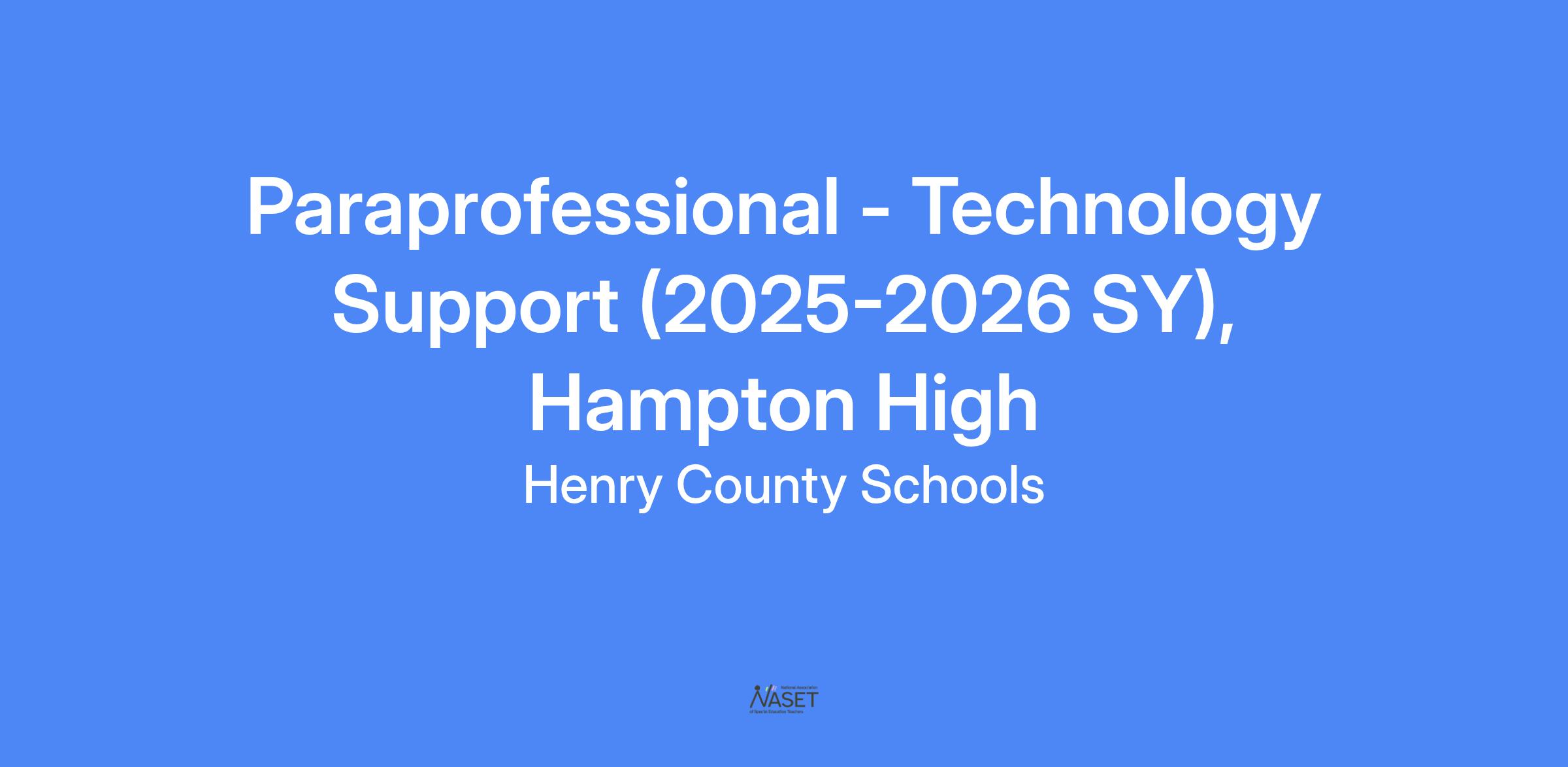 Position Title: Paraprofessional I and II, Technology Support