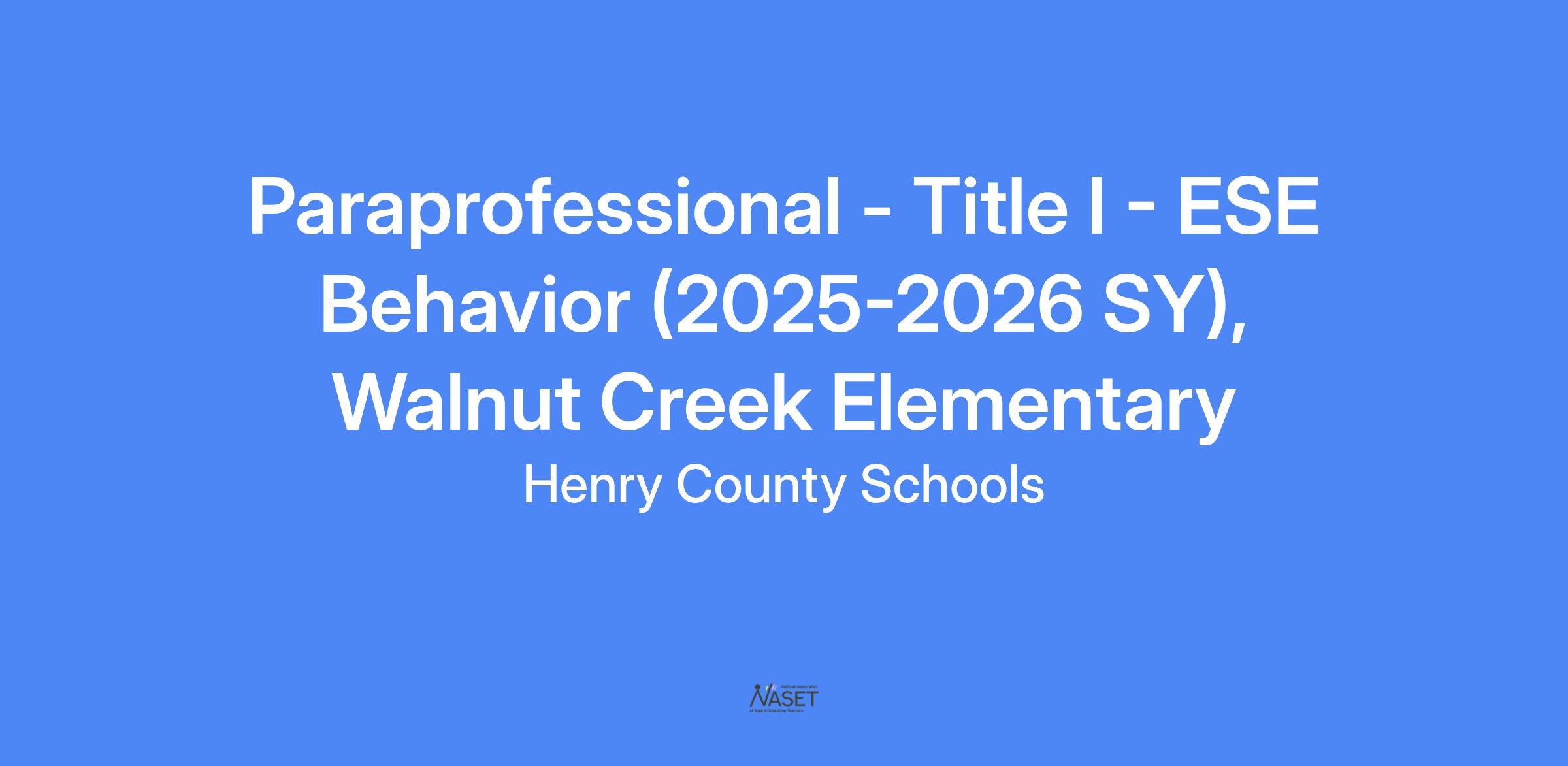 Position Title: Paraprofessional I and II, Exceptional Student Education