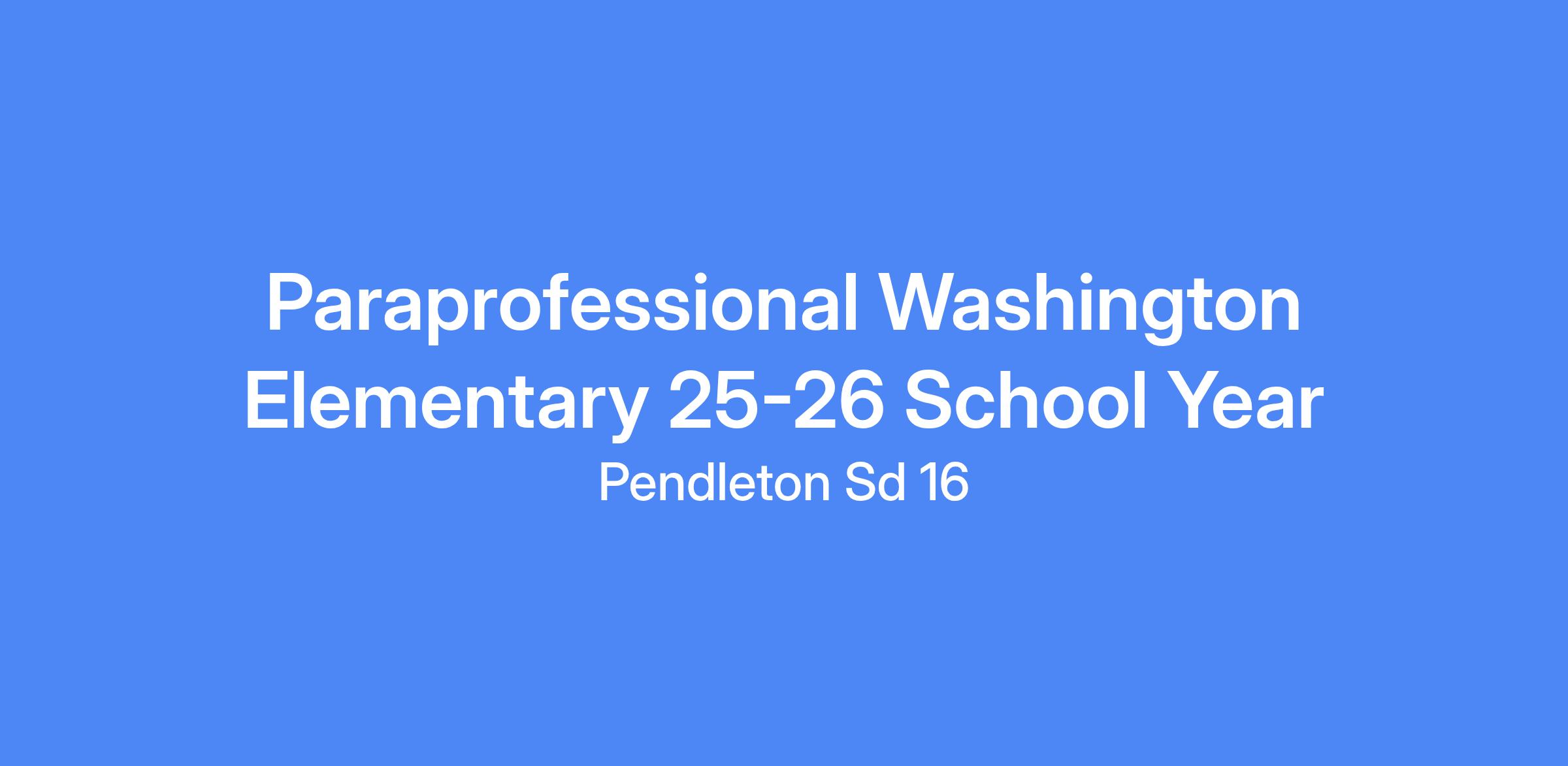 The Pendleton School District has an opening for a Paraprofessional/Instructional Assistant for the 25-26 school year.