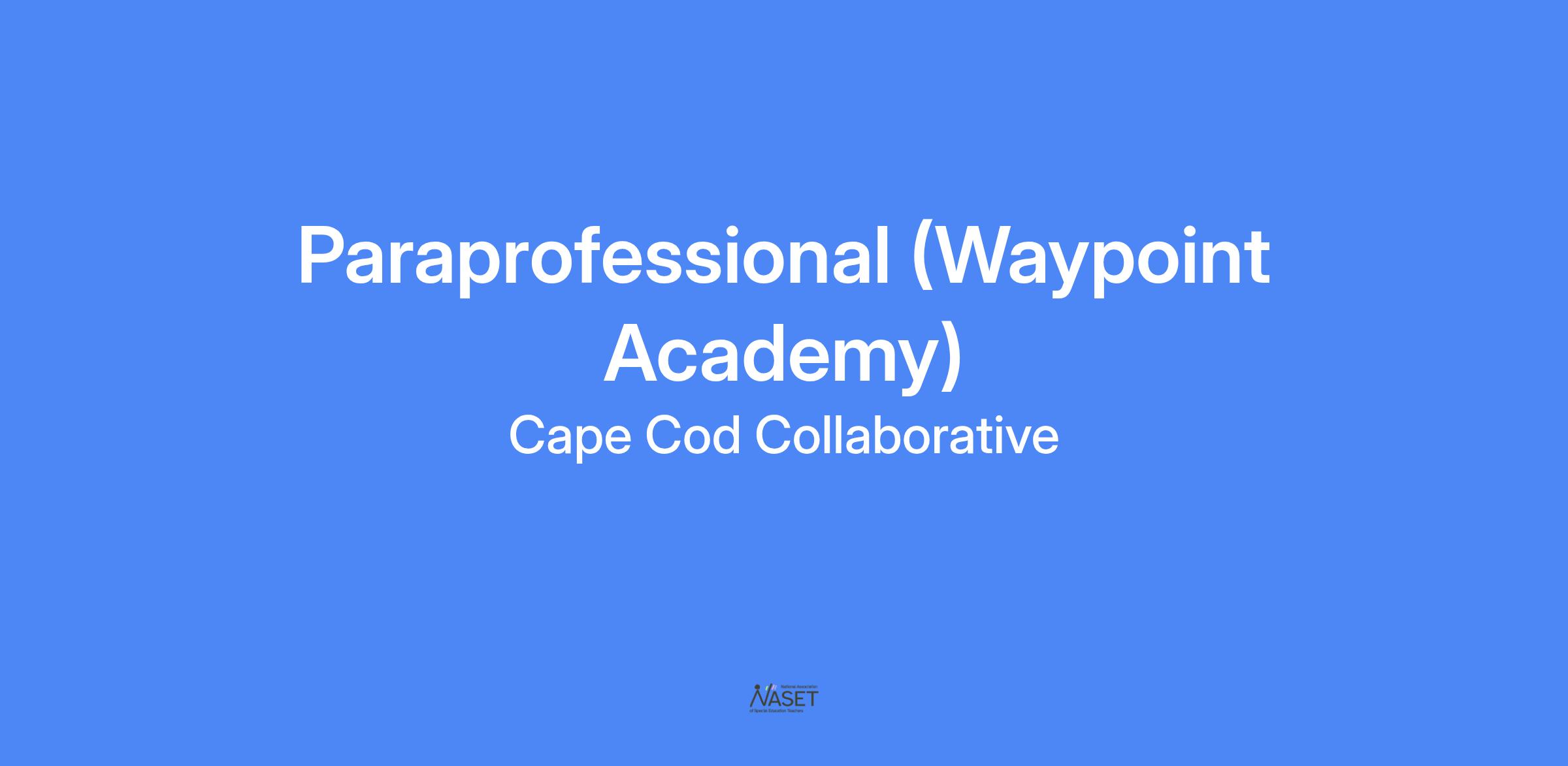 We are seeking Paraprofessionals for Waypoint Academy, a Collaborative public day school in South Yarmouth. Experience with students with disabilities and / or behavioral challenges is preferred.