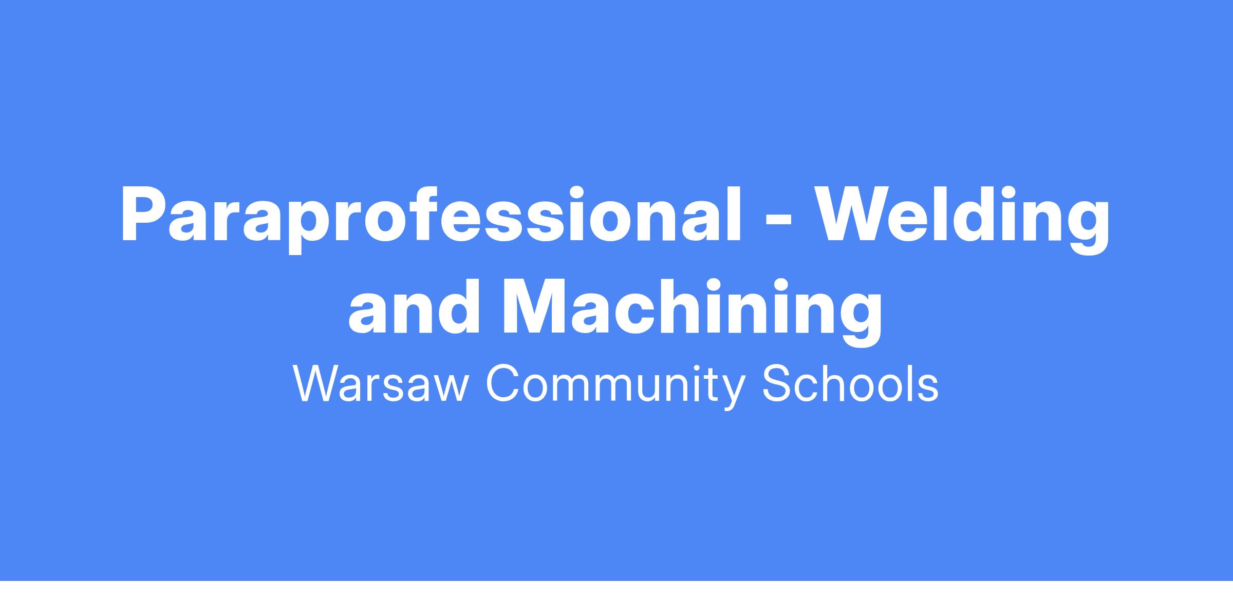 General Summary: A paraprofessional in this role assists certified teachers in welding and machining classrooms, supporting the creation of a safe and productive learning environment where students’ individual needs are met.