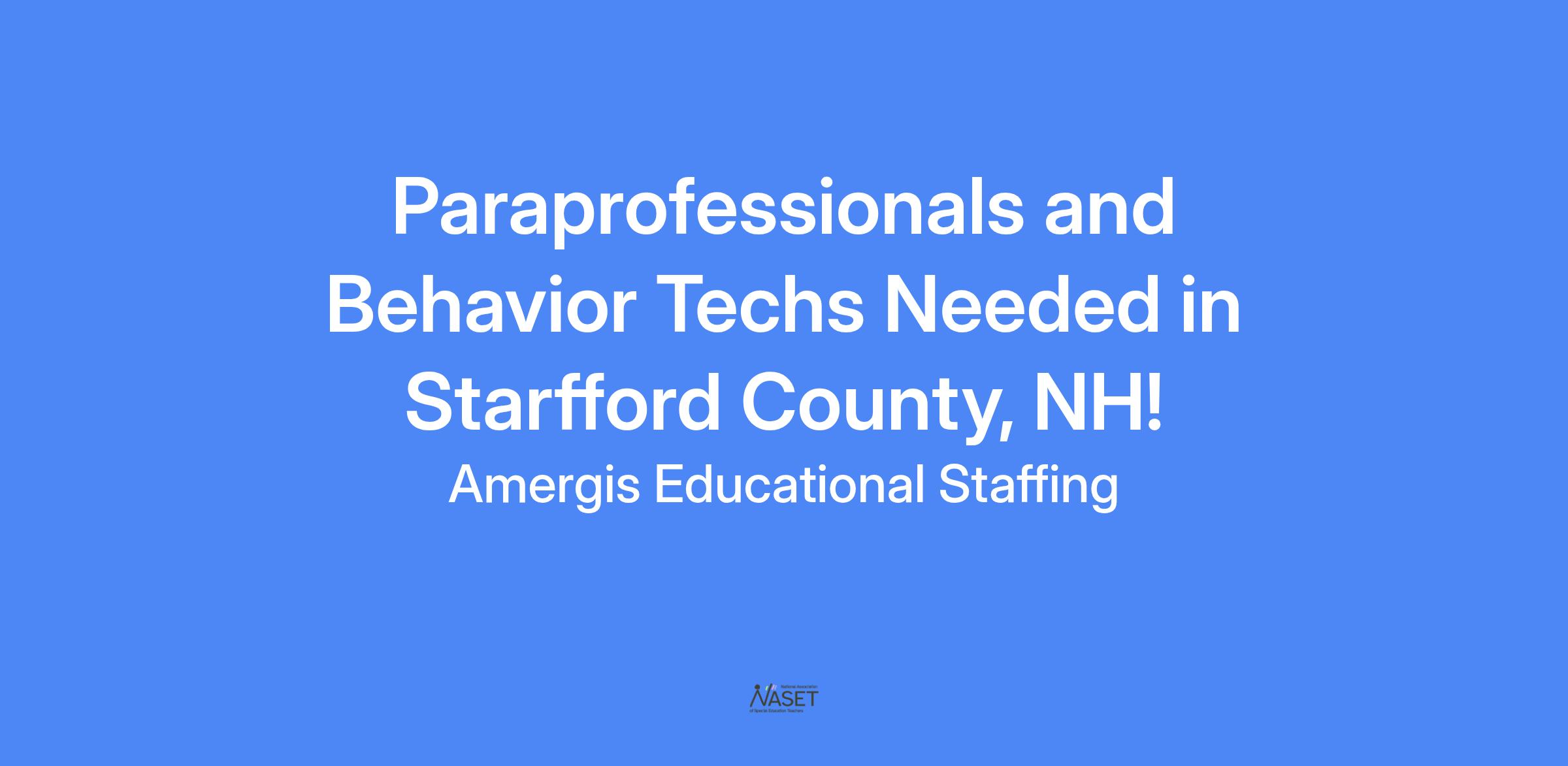Paraprofessionals and Behavior Techs Needed in Starfford County, NH!