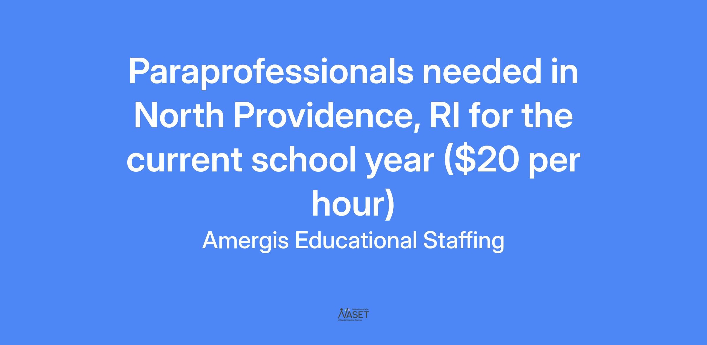 Amergis Staffing is seeking Paraprofessionals in North Providence, RI to assist them on a contractual basis for the 2025-2026 school year.