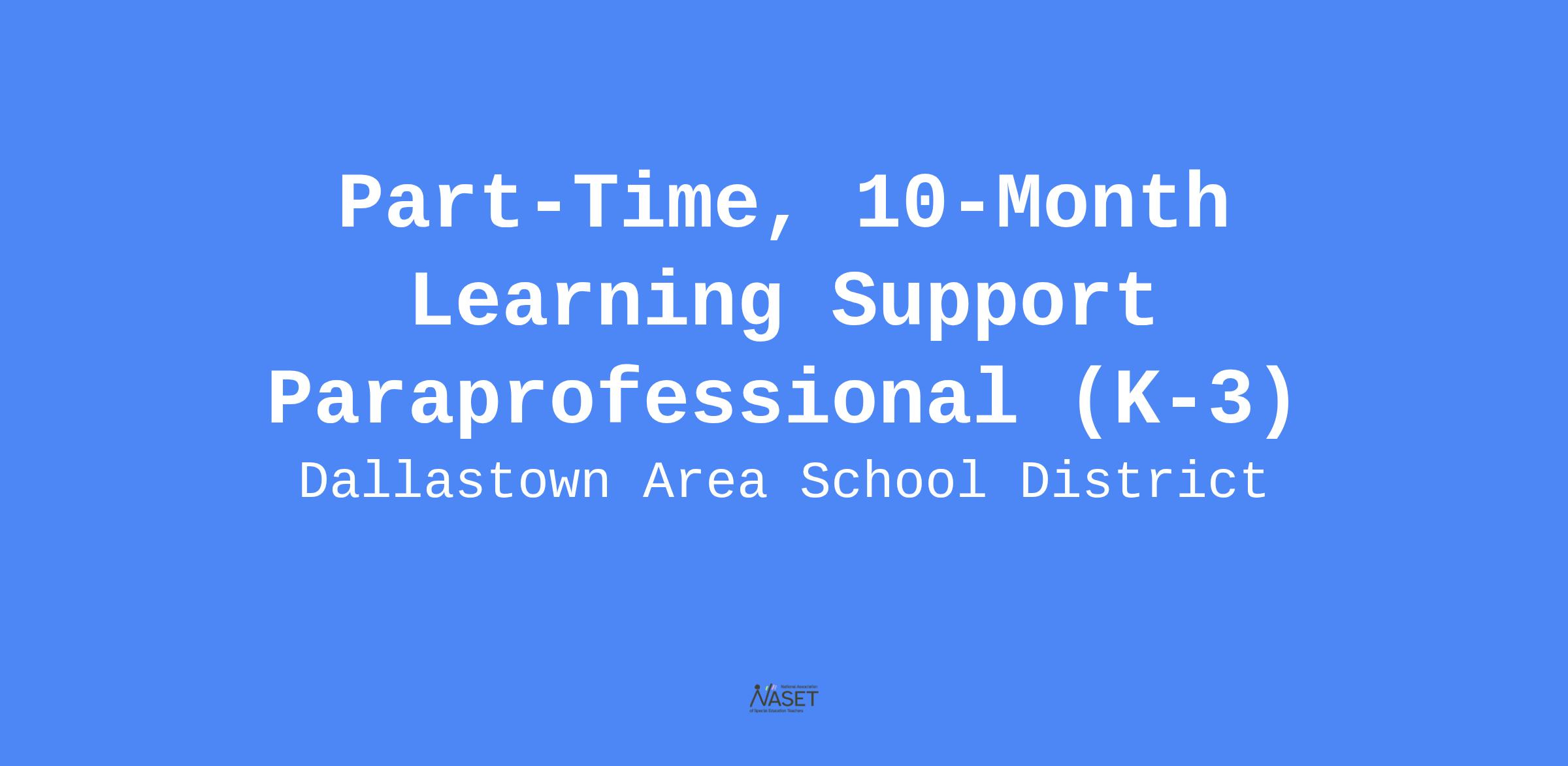 The Dallastown Area School District is seeking to fill a Part-Time, 10-Month Paraprofessional position in a Learning Support classroom at Dallastown Elementary School (Grades K-3)
