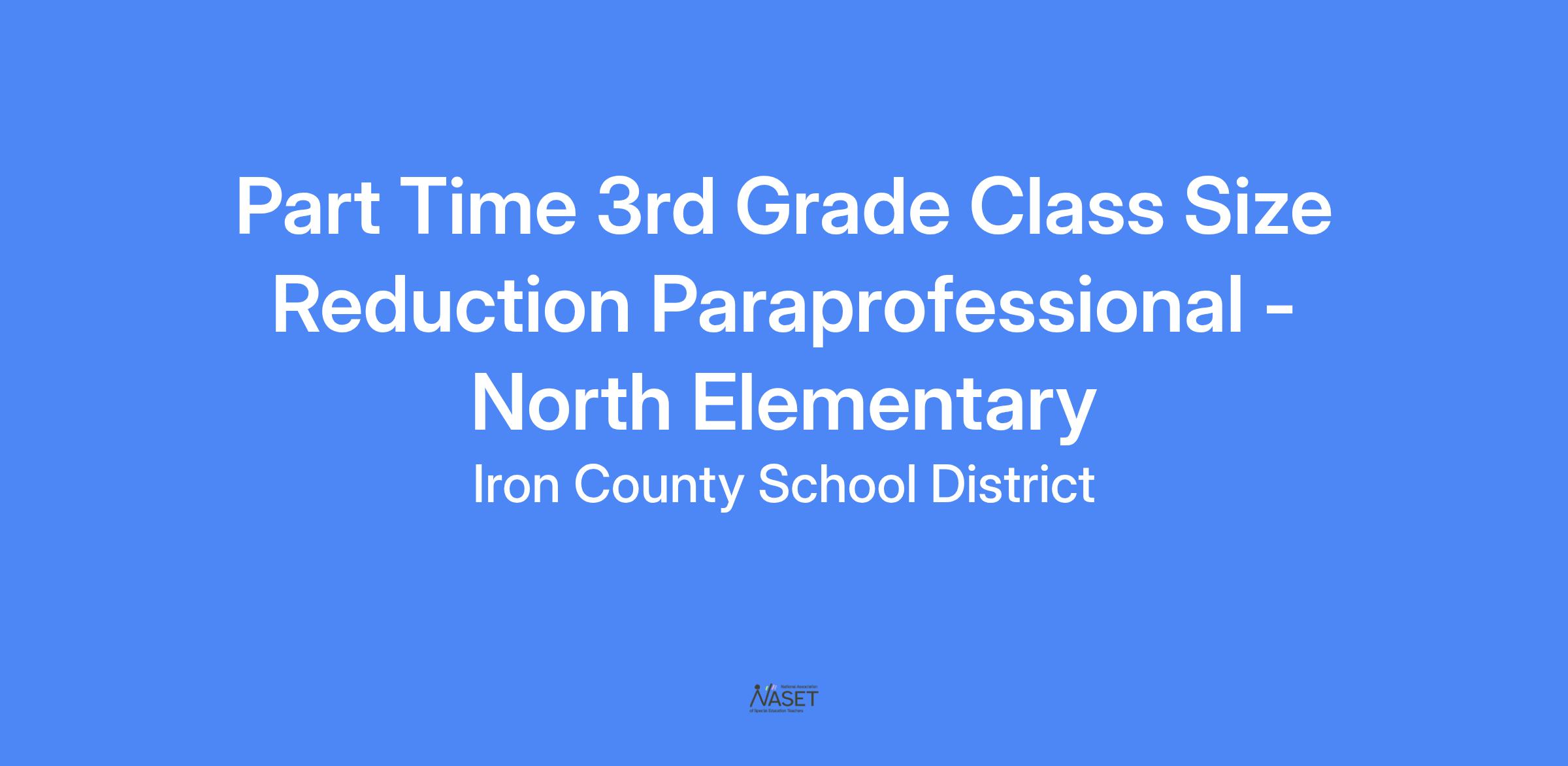 North Elementary School is seeking a Part Time Classroom Paraprofessional - 3rd Grade Class Size Reduction Paraprofessional to work 12.5 hours a week.