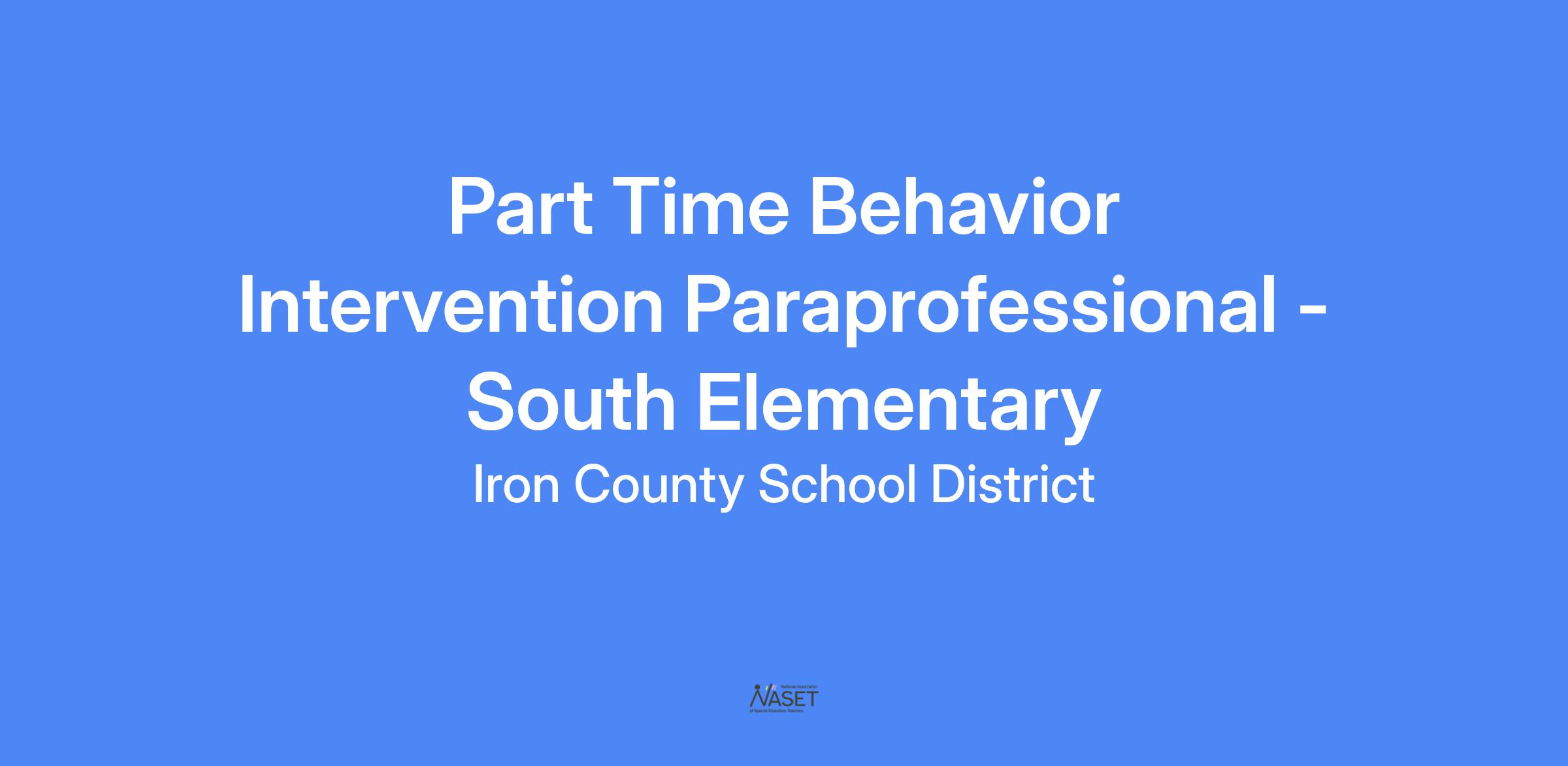 South Elementary is seeking a Part Time Behavior Intervention Paraprofessional to work 27.5 hours per week.