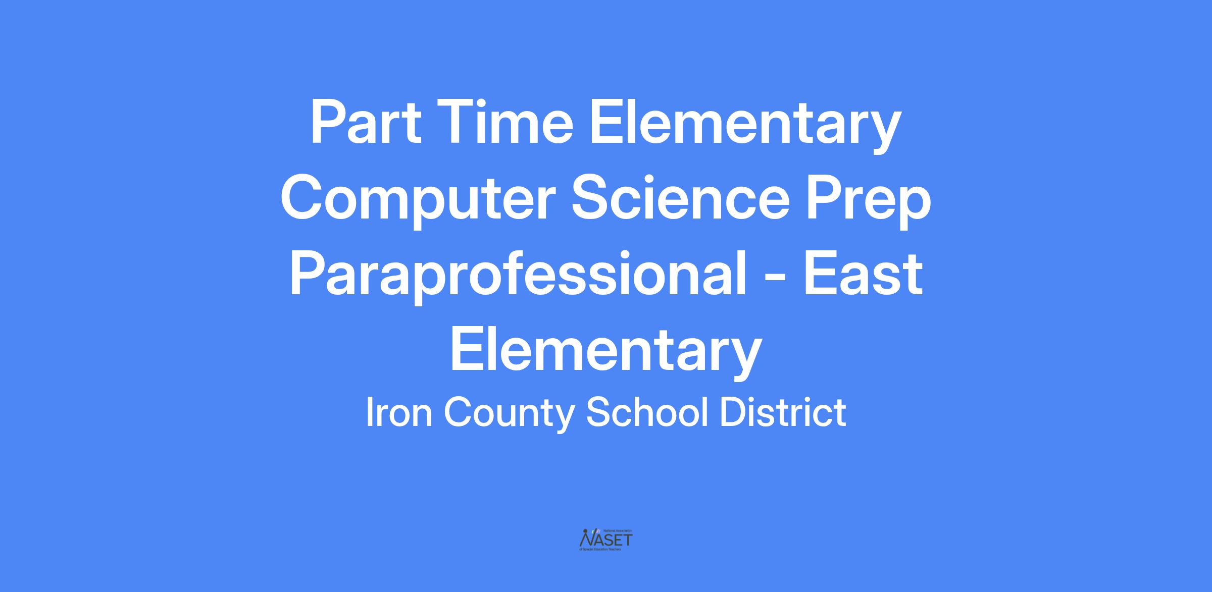 East Elementary School is seeking a Part Time Computer Science Prep Paraprofessional to work 16 Hours per week.