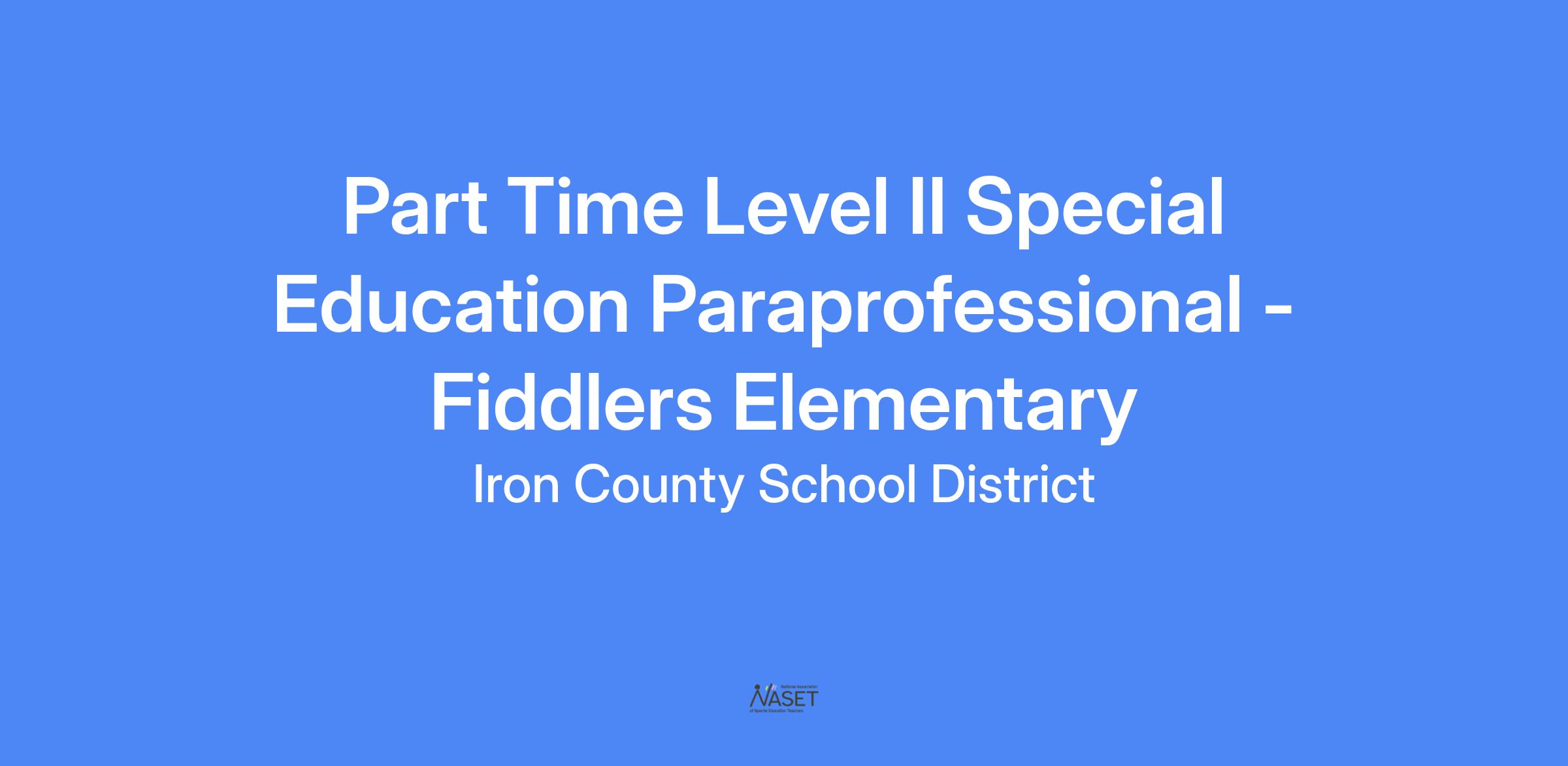 Fiddlers Elementary School is seeking a Part Time Level II Special Education Paraprofessional to work 27.5 hours per week.