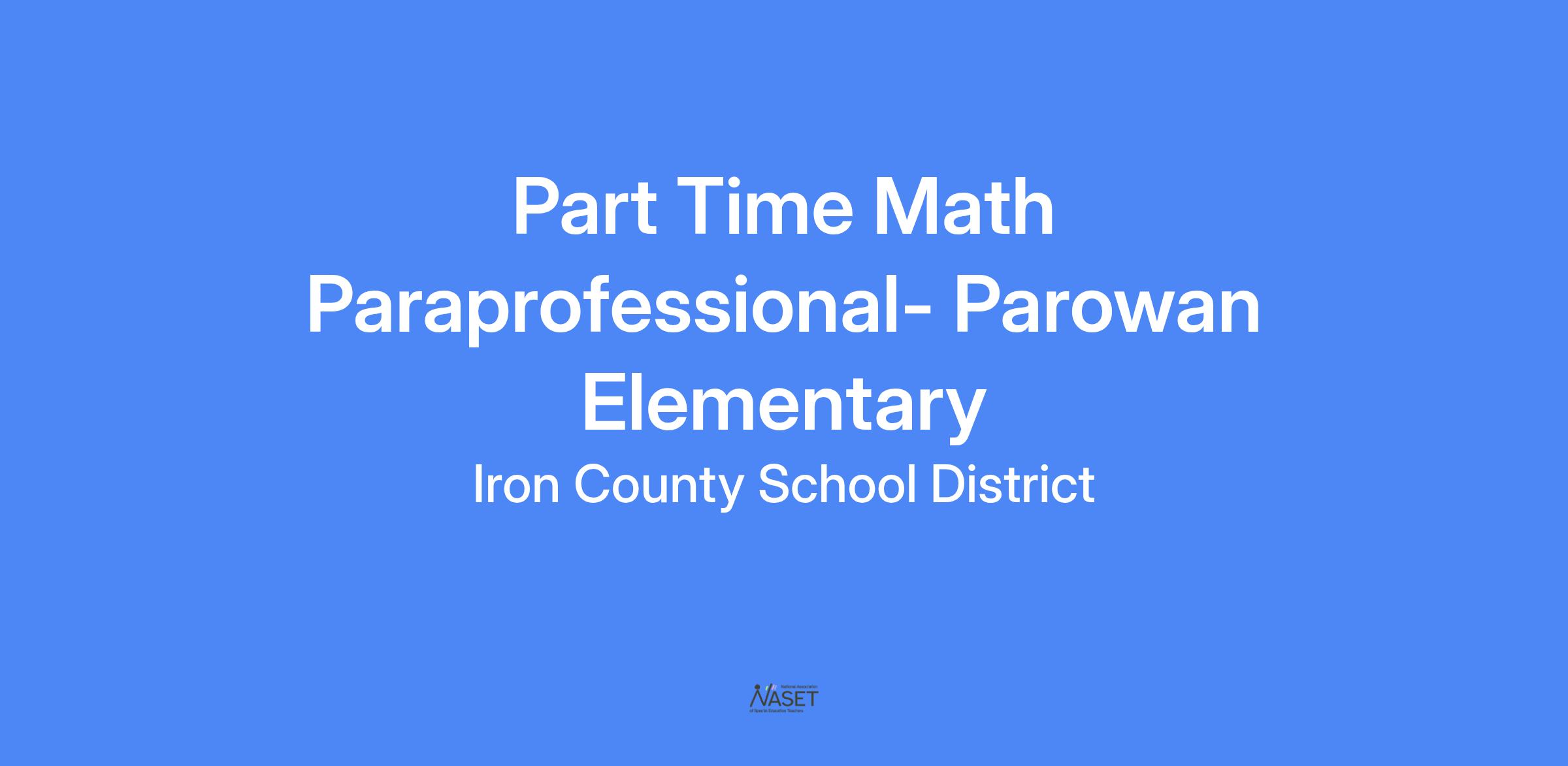Parowan Elementary School is seeking a Part Time Math Classroom Paraprofessional to work 23 hours per week.