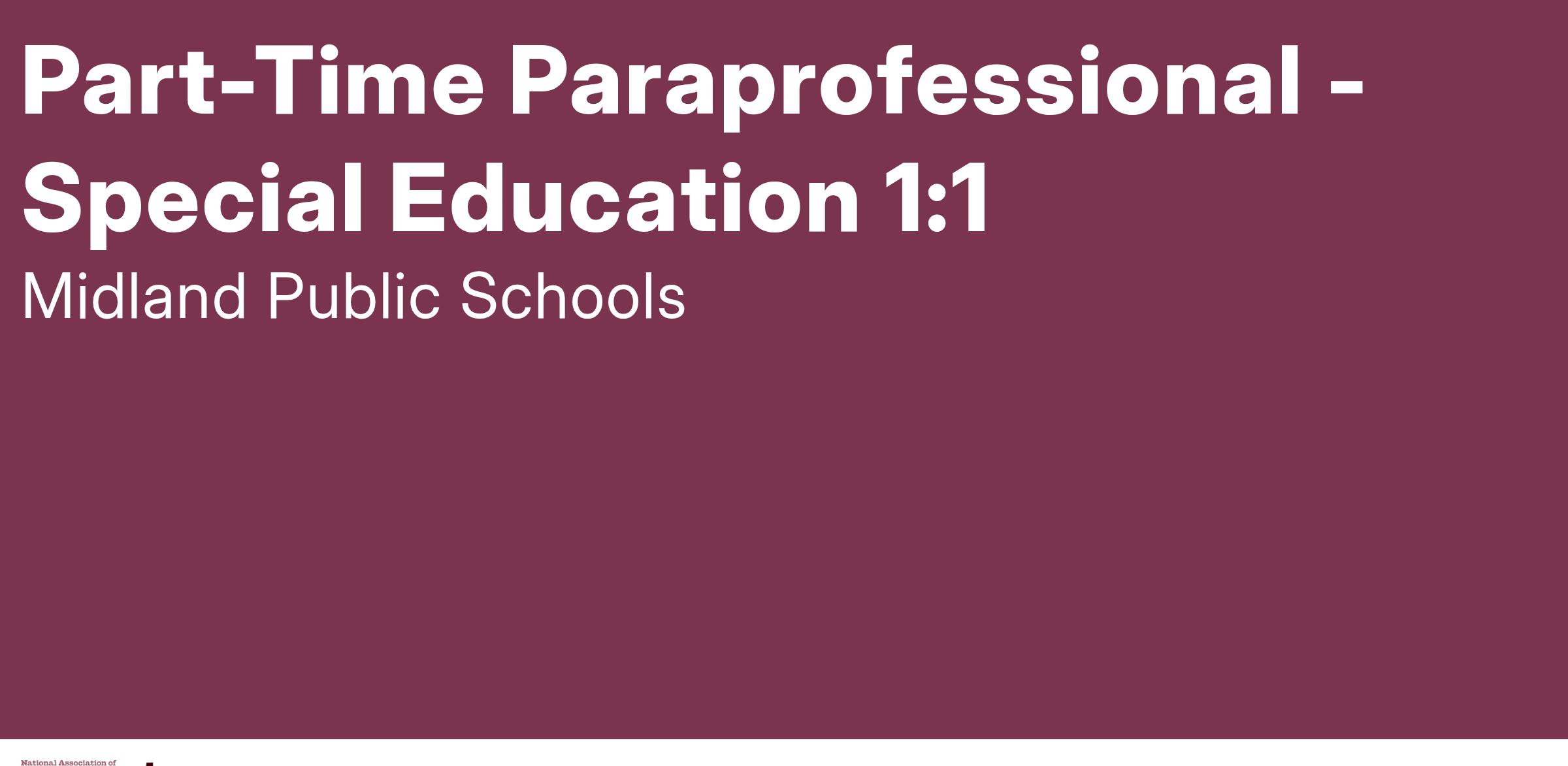 Part-Time Paraprofessional - Special Education 1:1