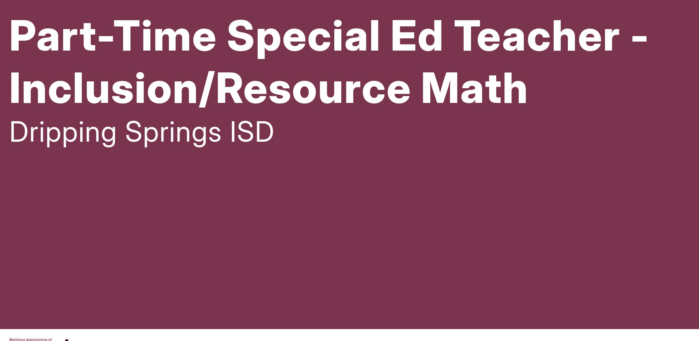 Part-Time Special Ed Teacher - Inclusion/Resource Math