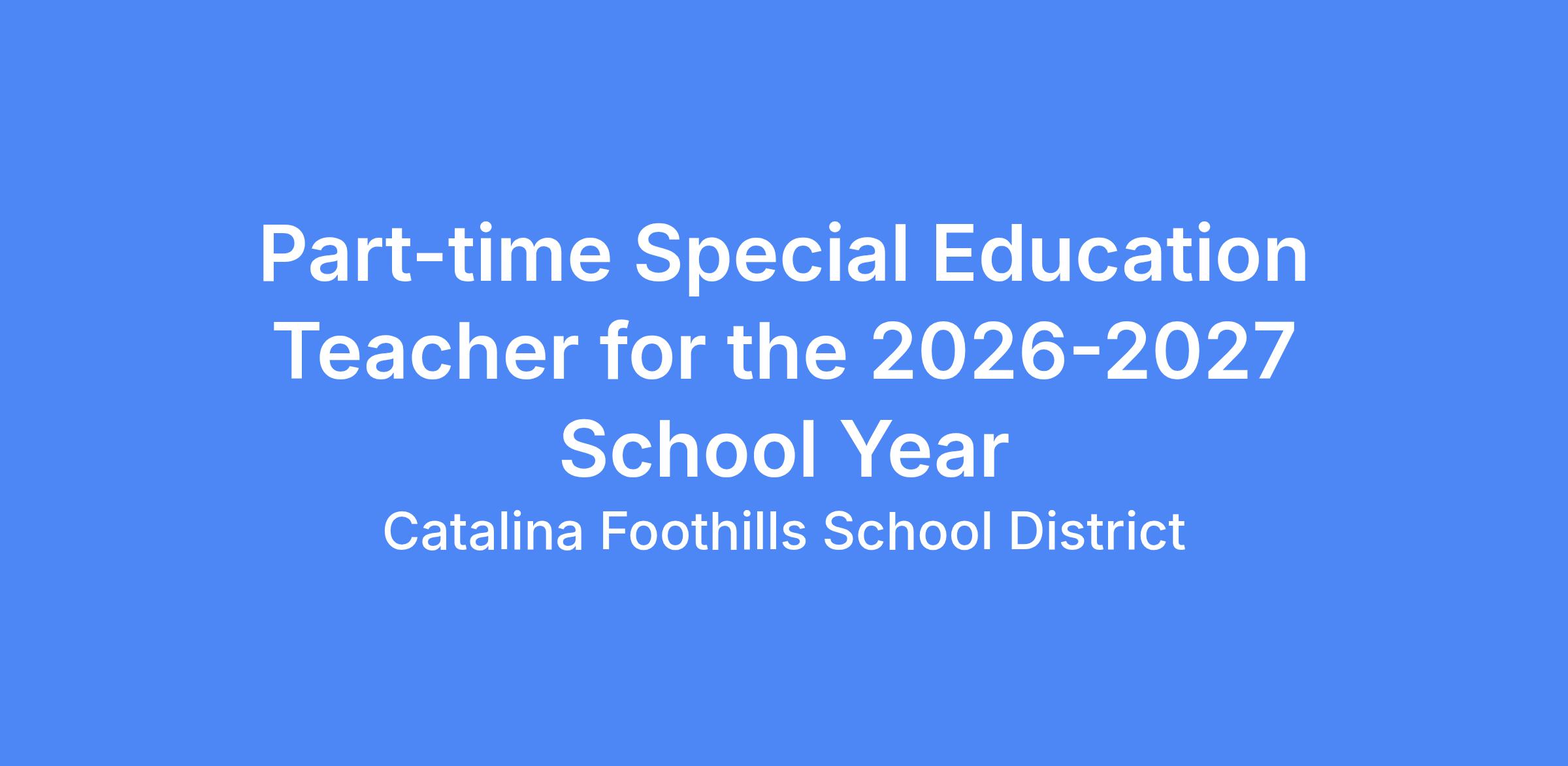 Part-time Special Education Teacher for the 2026-2027 School Year