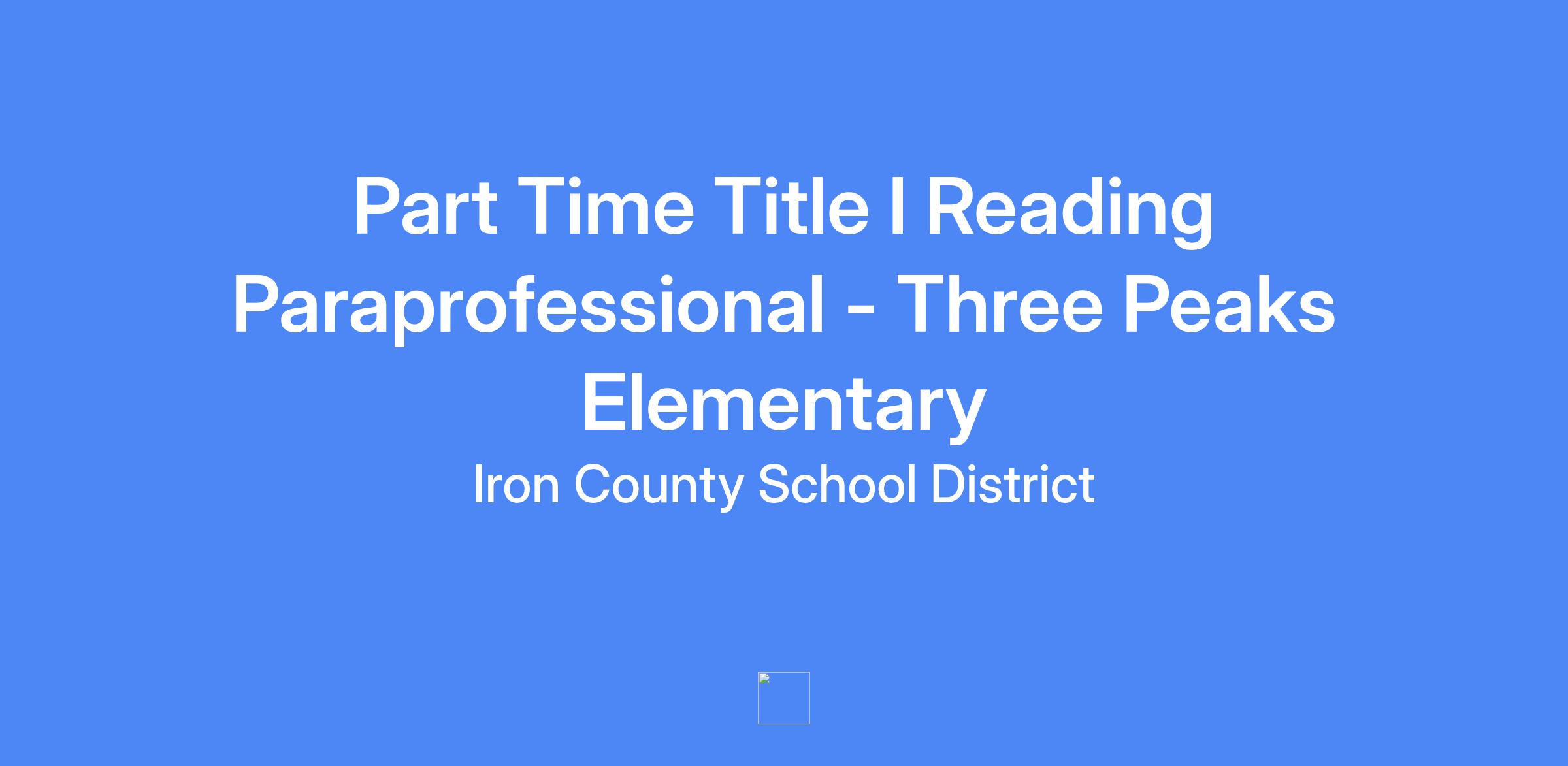 Three Peaks Elementary is seeking a Part Time Title I Paraprofessional to work 22.5 hours per week.