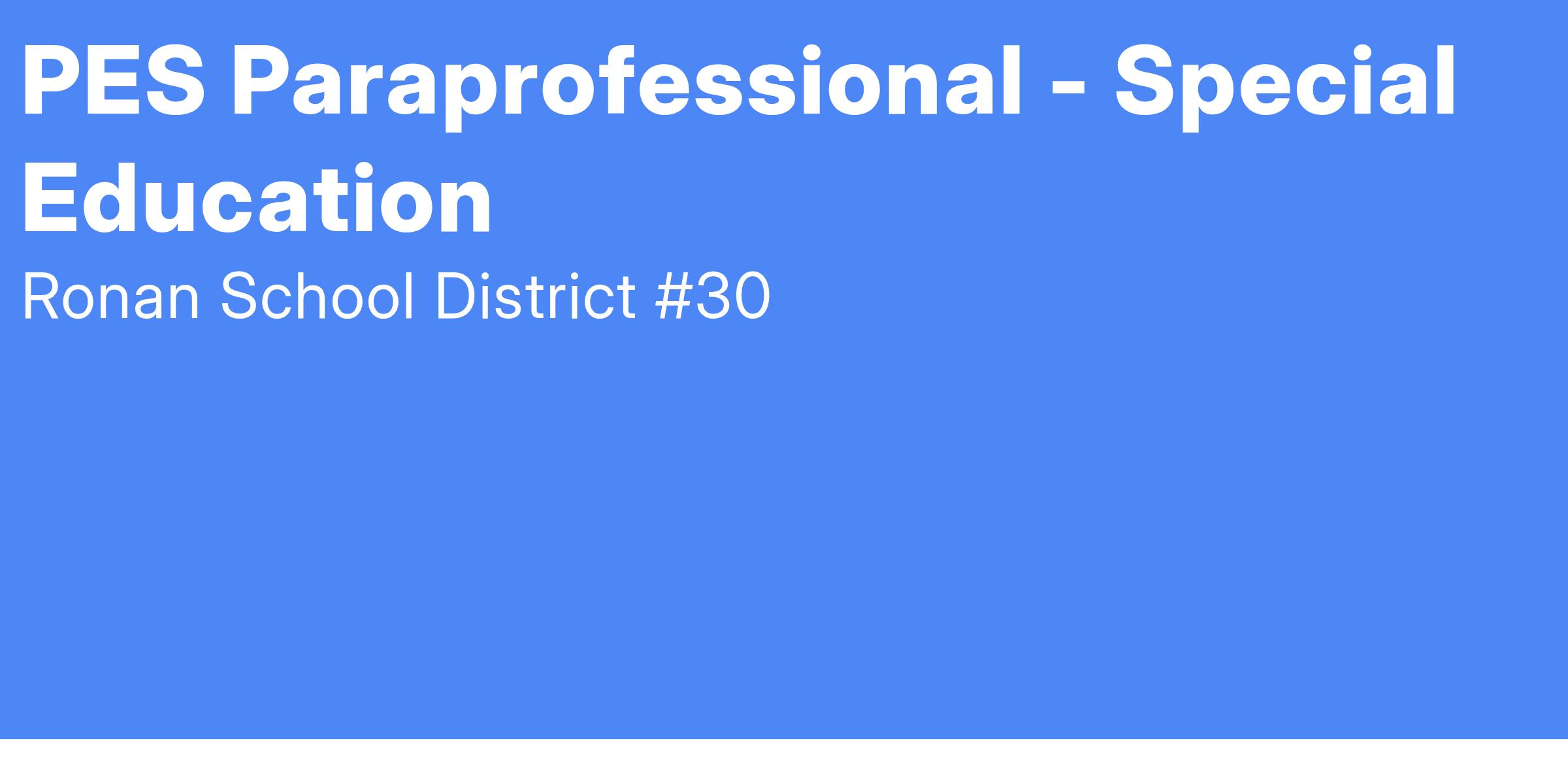 Job Title: SPECIAL NEEDS PARAPROFESSIONAL