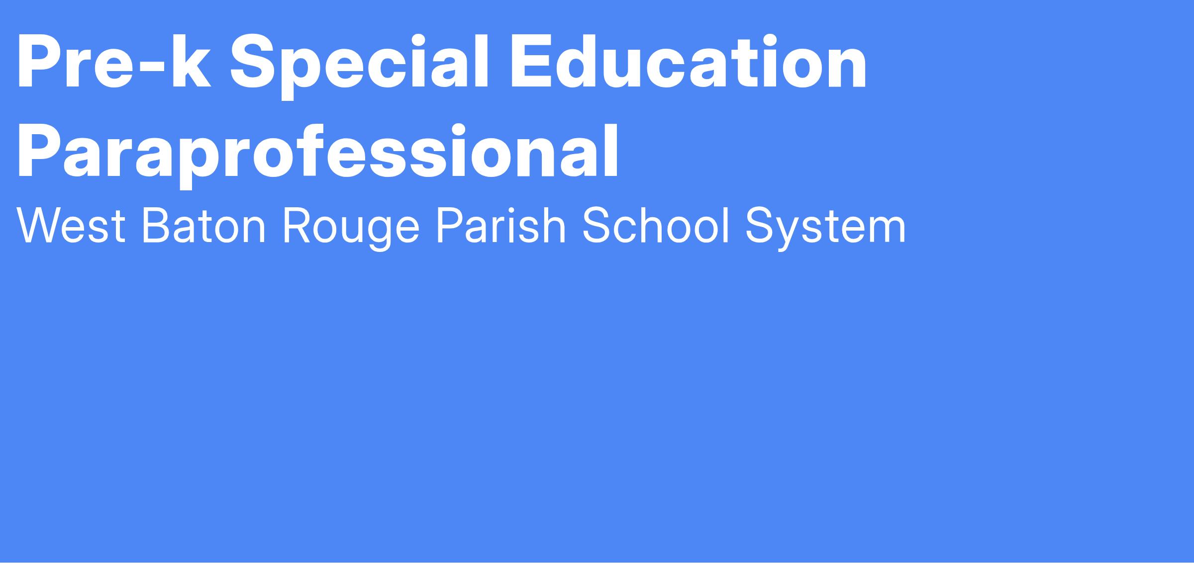 Paraprofessional (Head Start, Title I, Regular Education, and Special Education)