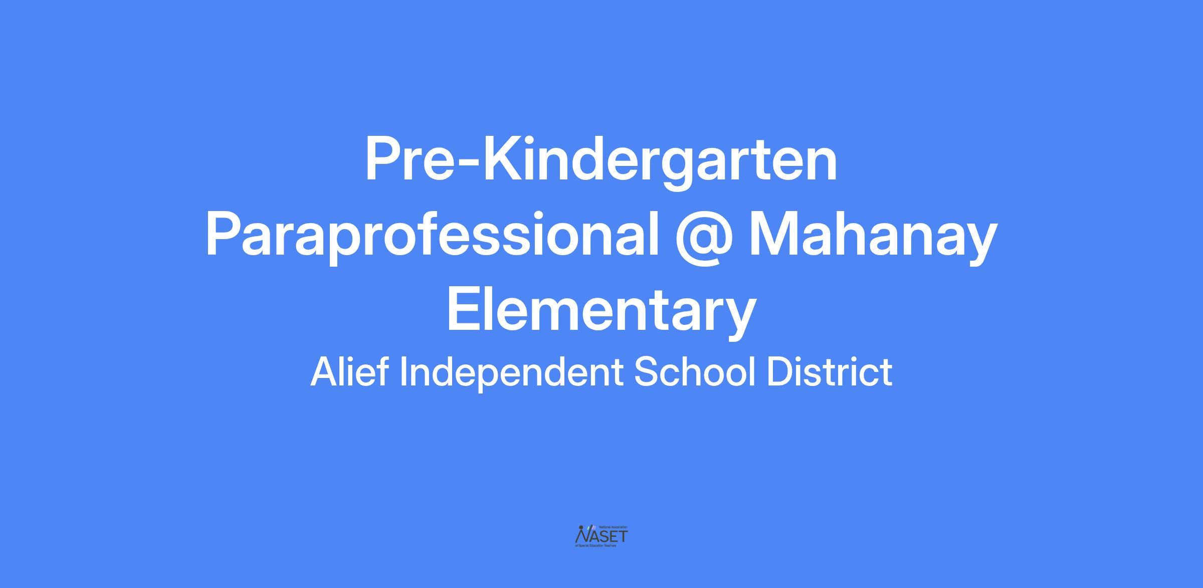 Pre-Kindergarten Paraprofessional @ Mahanay Elementary