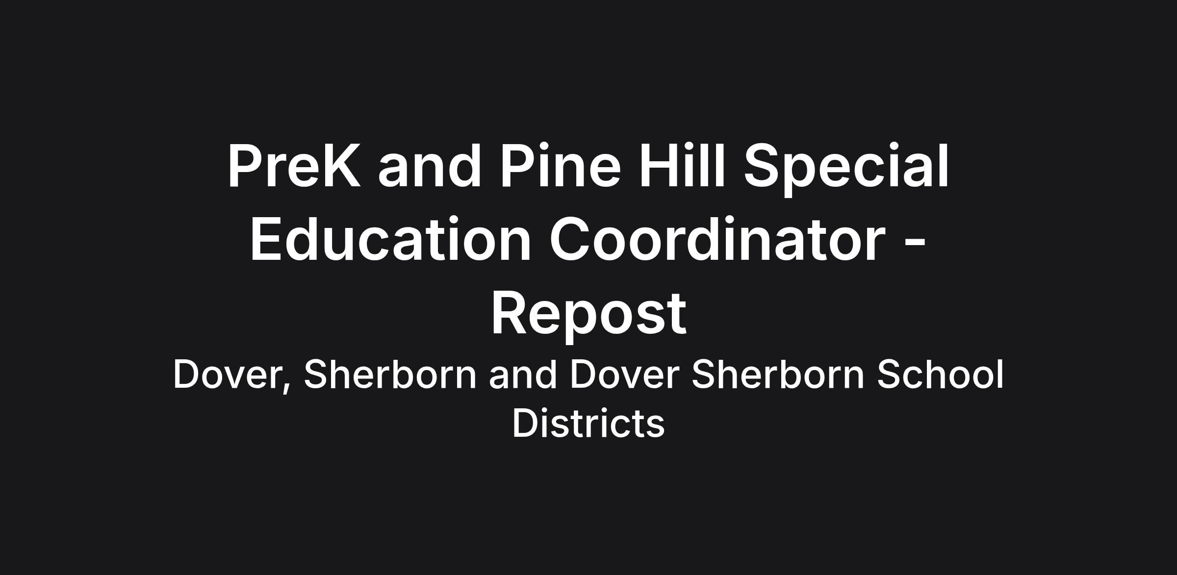 Dover-Sherborn Public Schools seeks an innovative Special Education Coordinator to lead special education at Pine Hill Elementary School and direct our District-Wide Preschool Programming. This role focuses on shaping the vision for special education delivery, optimizing current programs, and designing new frameworks to best serve our students."