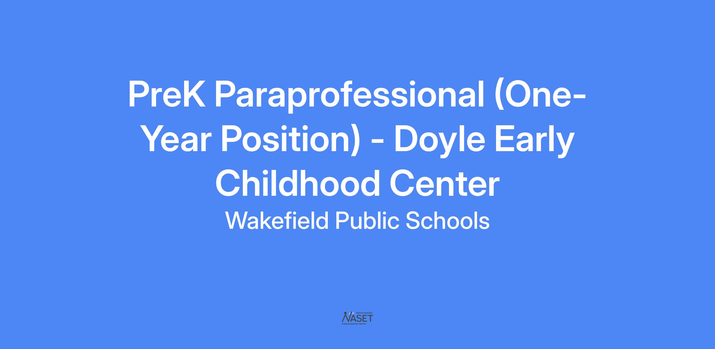POSITION TITLE: PreK Paraprofessional (One-Year Position)