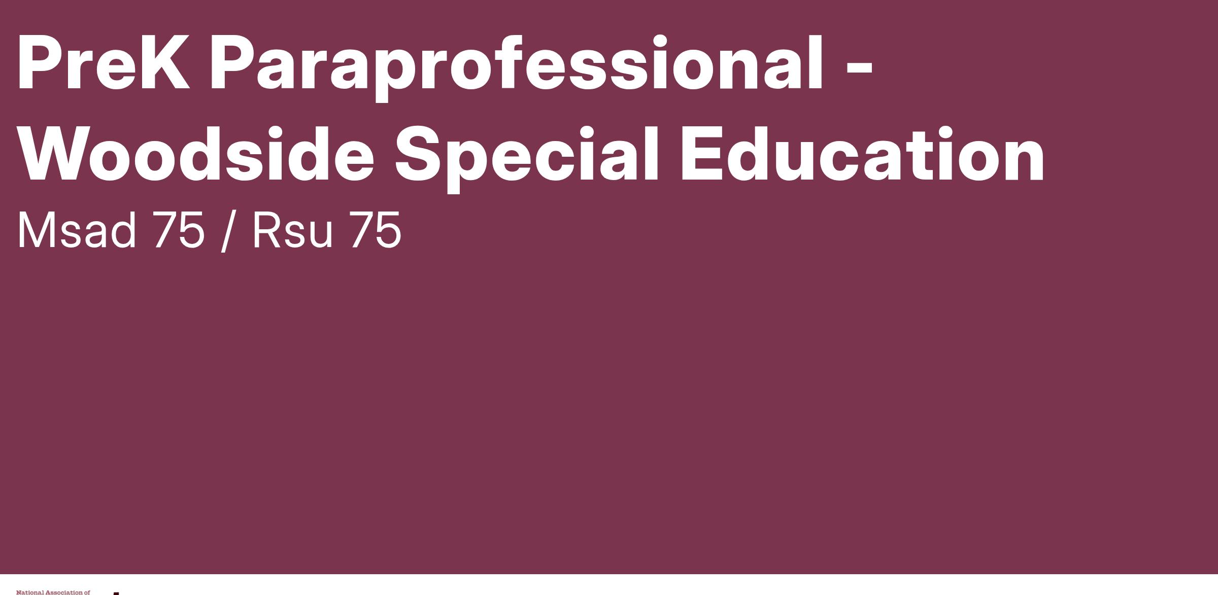 MSAD 75 is seeking a PreK Paraprofessional (Special Education) at Woodside Elementary School to join our vibrant educational community. Together, we can inspire the next generation of learners and leaders.