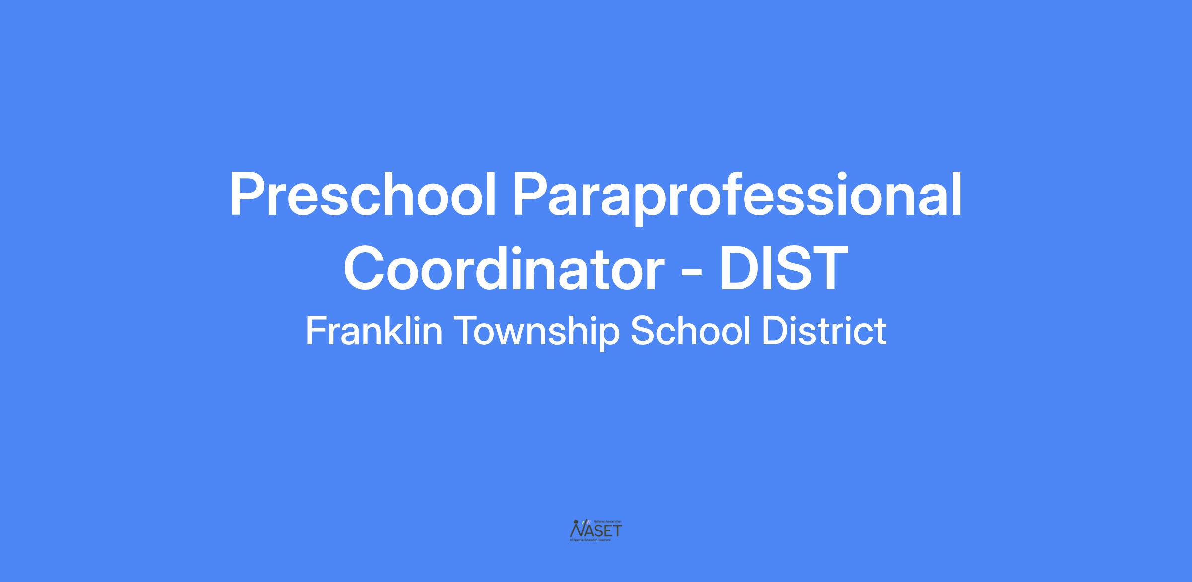 The Preschool Paraprofessional Coordinator is a non-aligned, non-tenure tract position