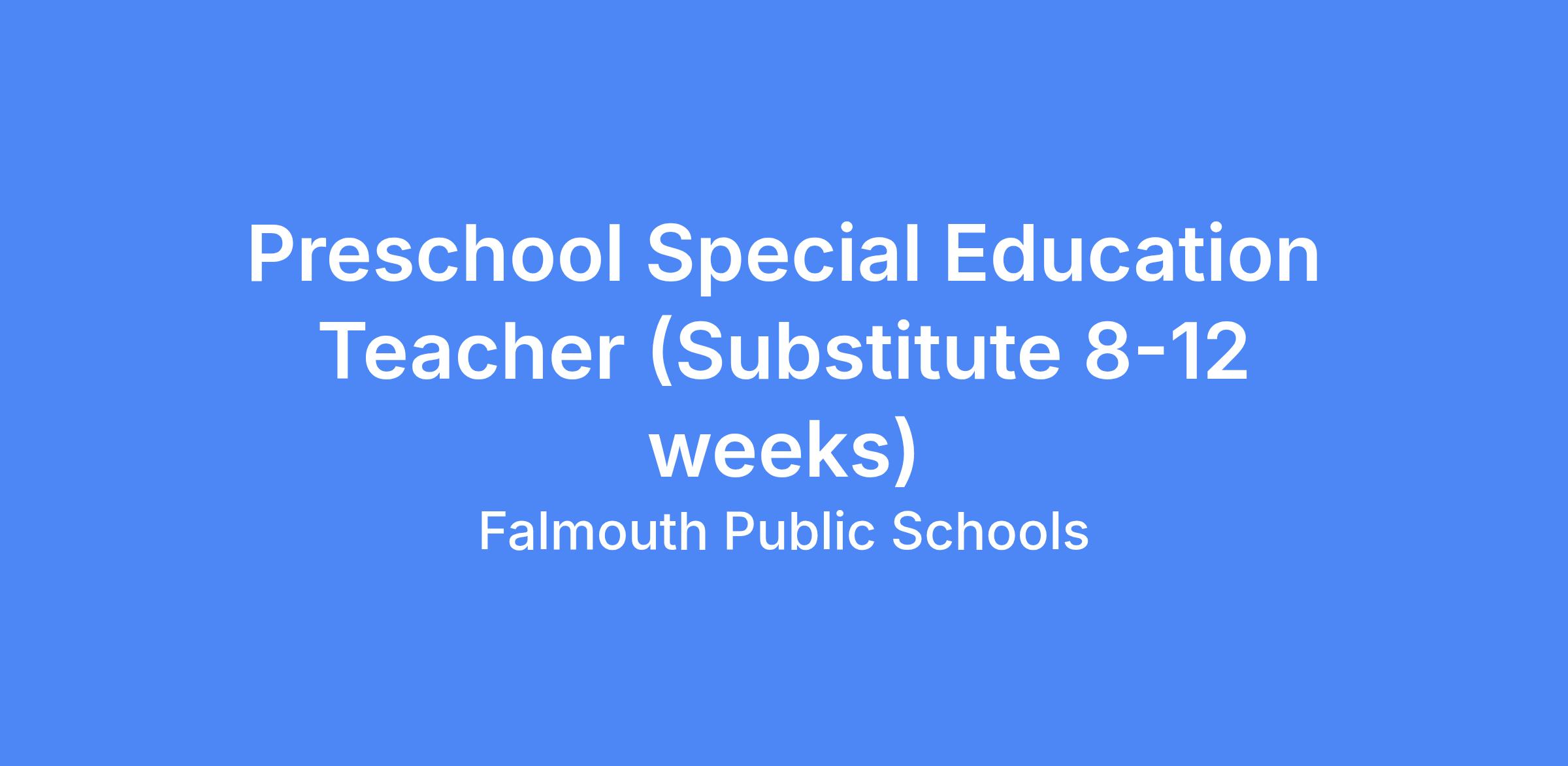 Preschool Special Education Teacher (Substitute 8-12 weeks)