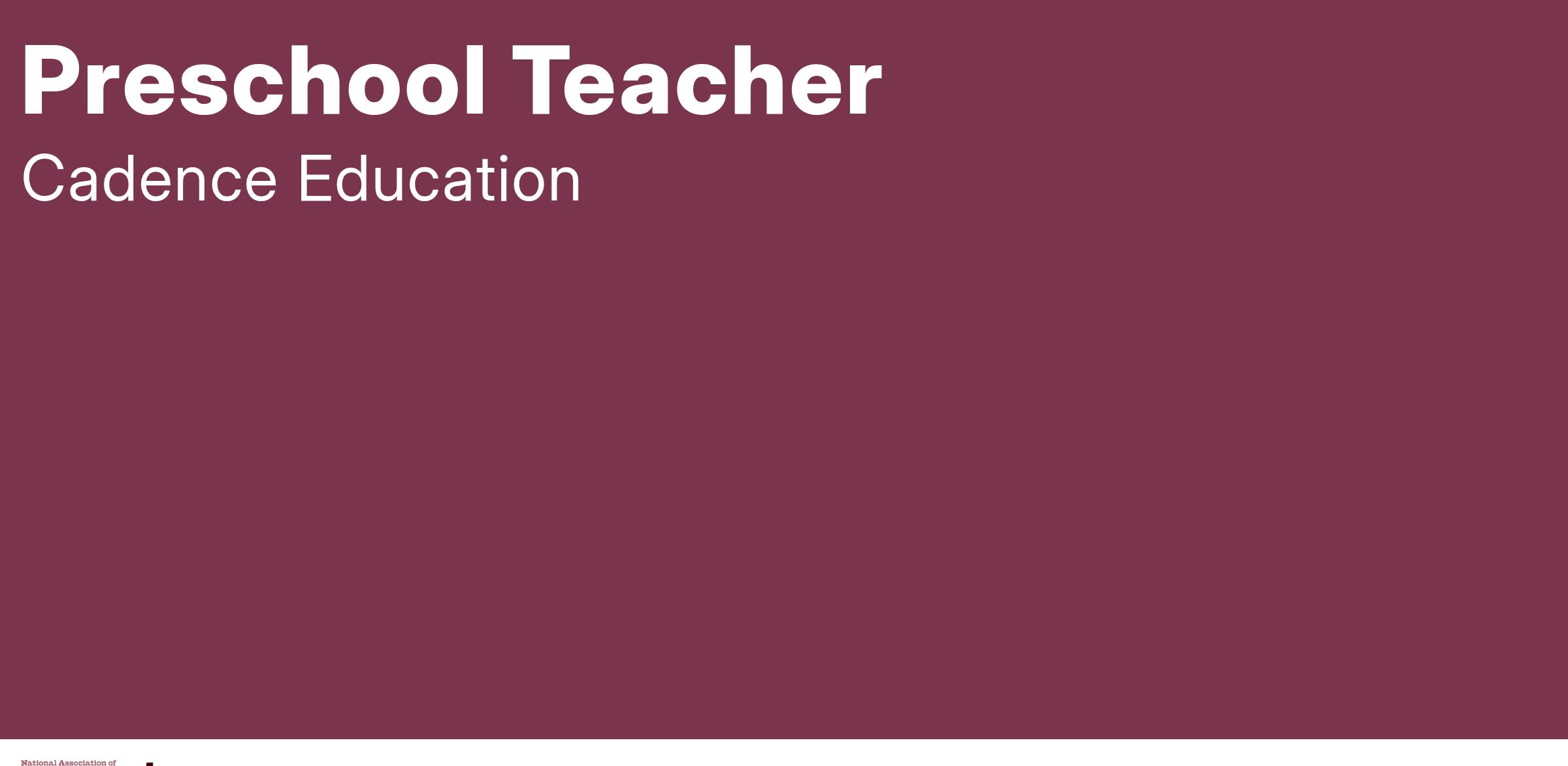 At Cadence, we’re all about shaping bright futures for children, families, employees, and communities. Our innovative, research-based curriculum and cozy, home-like environments redefine early education. You’ll join a fun, talented team that thrives on collaboration, open communication, and a shared passion for child development. We’re not just a preschool—we’re a playground for growth, and we need your energy to make it shine!