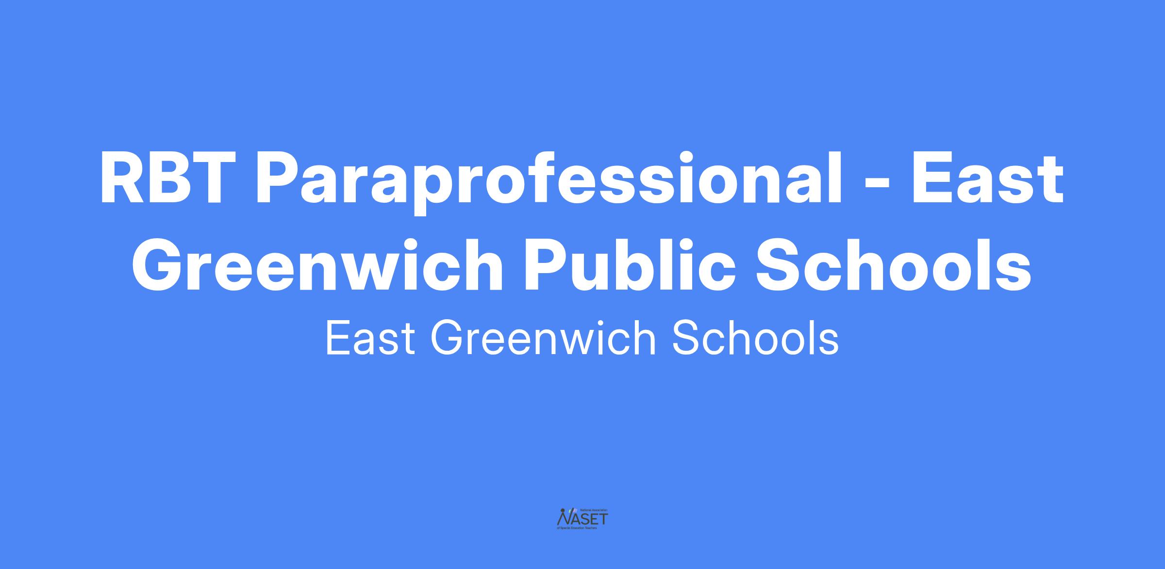 East Greenwich Public Schools is seeking applications for an RBT Paraprofessional. Applicants must have an RBT certification.