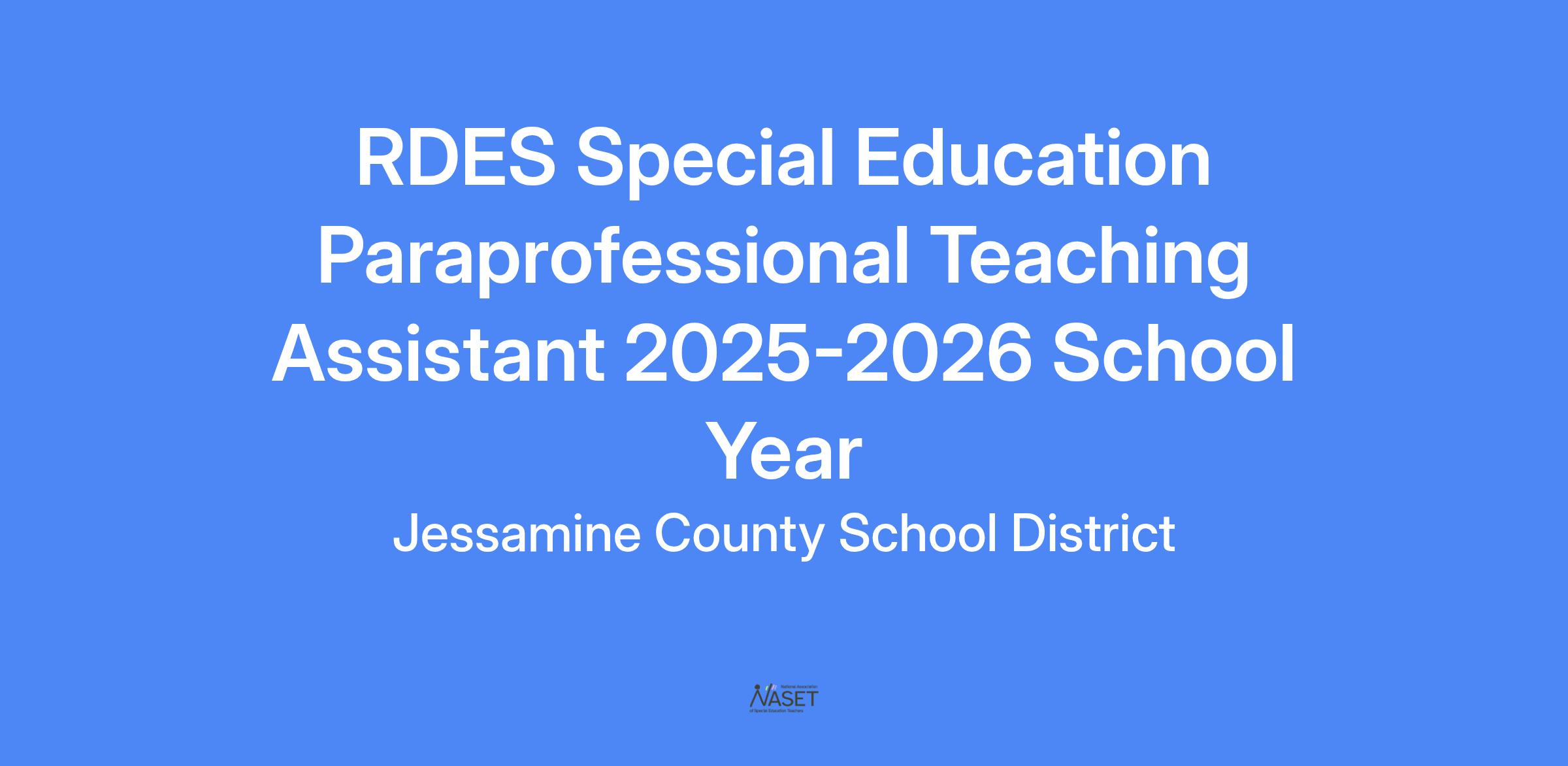 RDES Special Education Paraprofessional Teaching Assistant 2025-2026 School Year