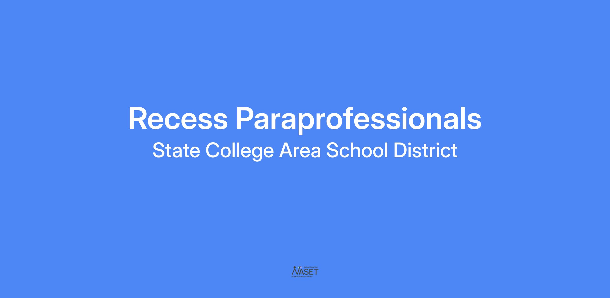 The State College Area School District is currently accepting applications for paraprofessionals at the elementary level during recess. This position is part time, scheduled for 4 hours per day, with specific daily hours dependent on the elementary school that is hiring.
