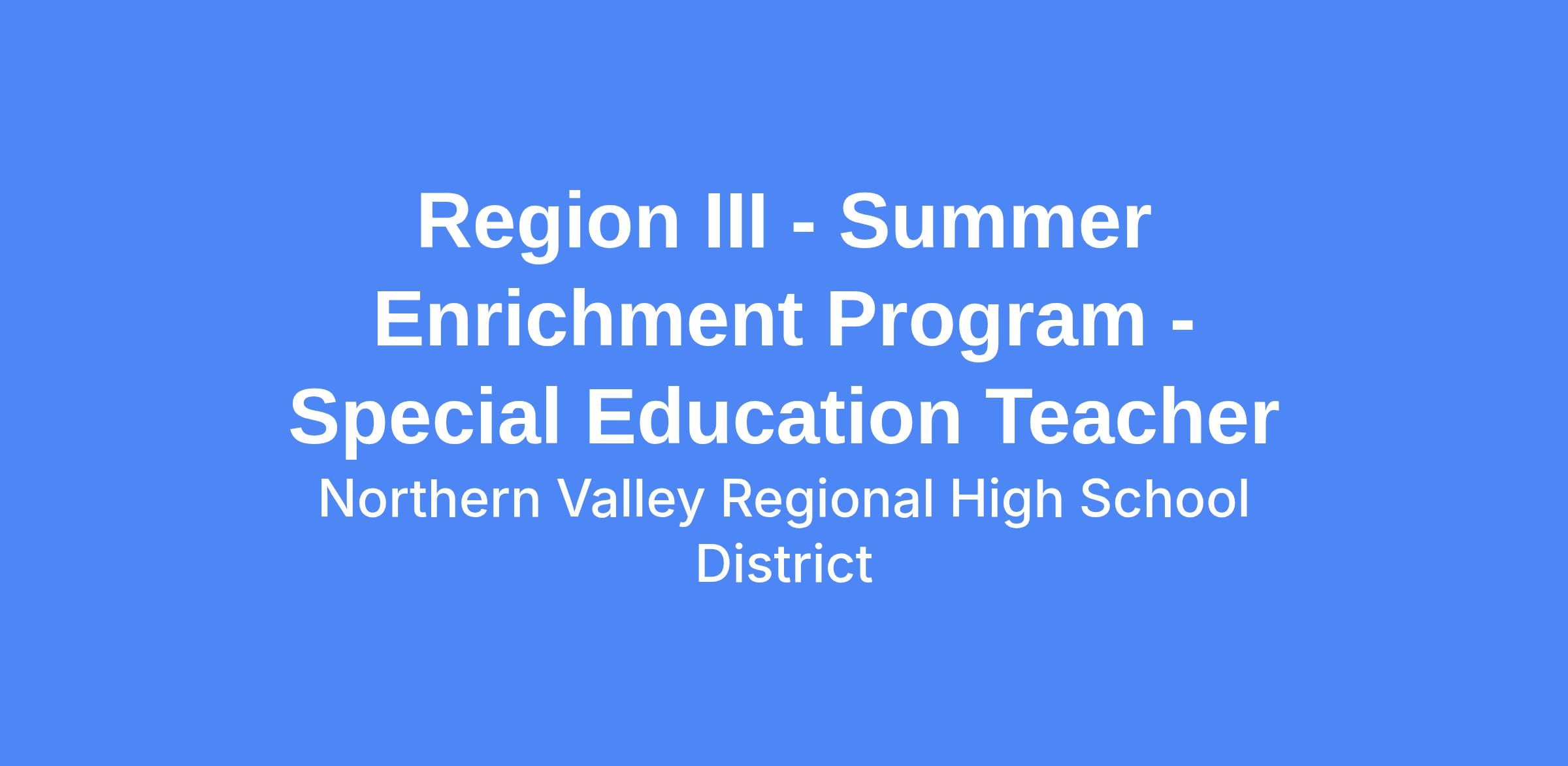 Position Available: Region III - Summer Enrichment Program - Special Education Teacher
