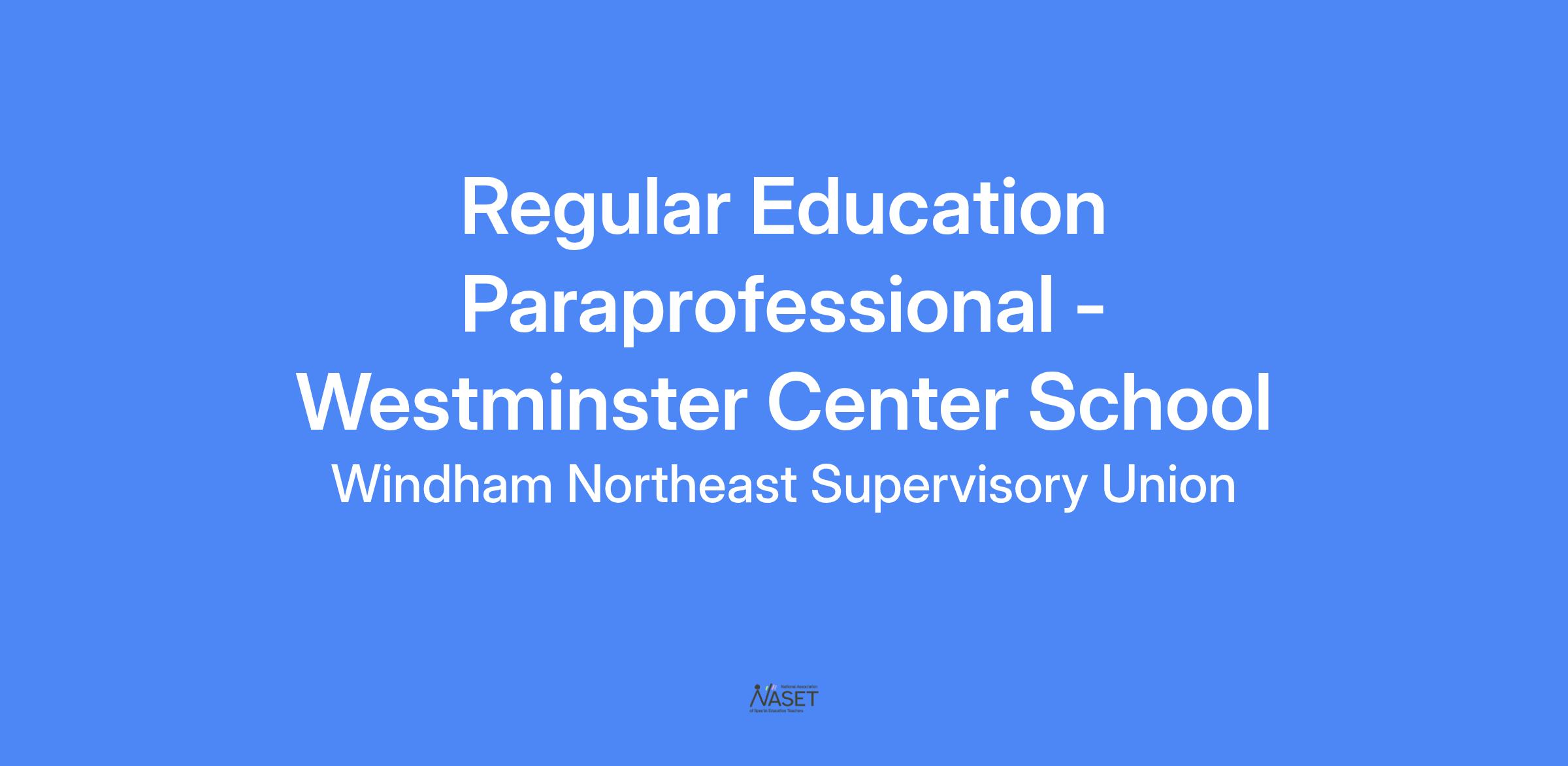 Regular Education Paraprofessional - Westminster Center School